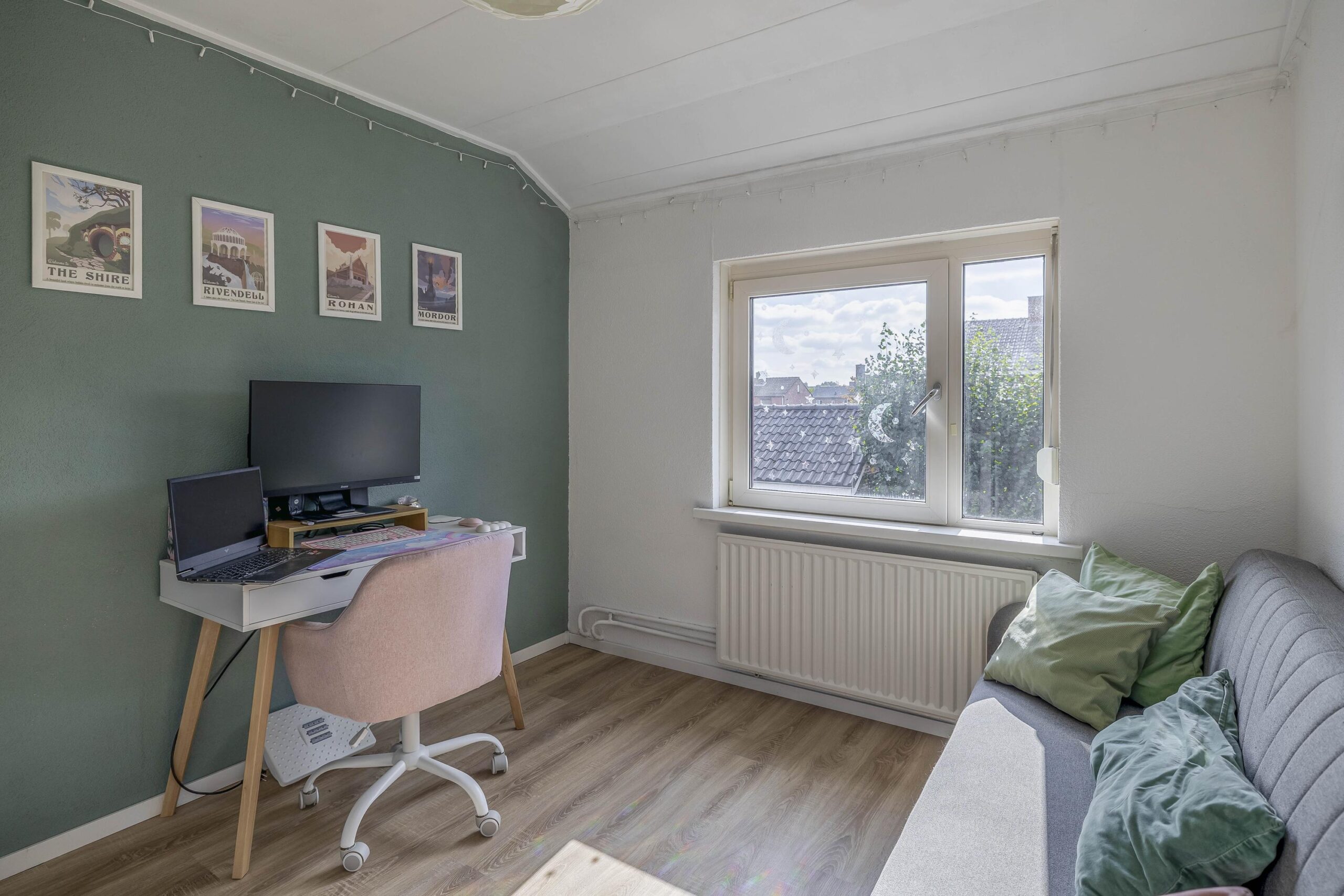 Op de verdieping ligt een doorlopende laminaatvloer. Op de overloop bevindt zich een handige bergkast. Er zijn 3 slaapkamers (ca. 6m², 8,5m² en 11m²) aanwezig.