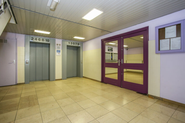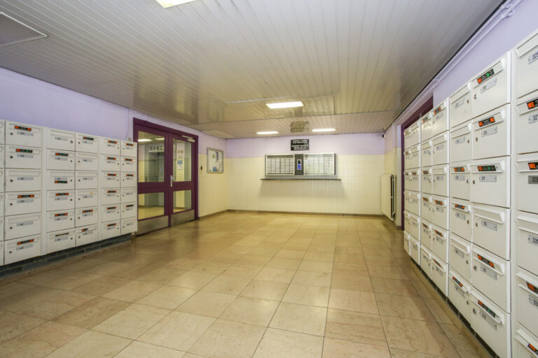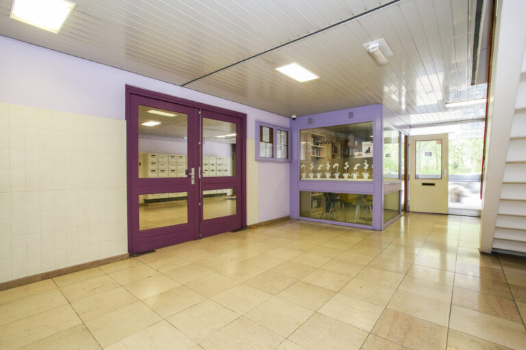 Via de centrale hal is de afgesloten entree naar de liften en de trappenpartij bereikbaar. Tevens is hier de grote, algemene fietsenstalling die alleen met chip te openen is.