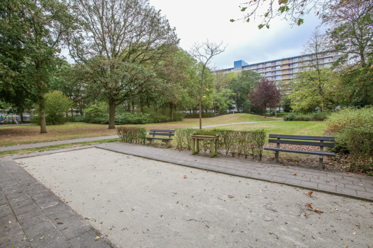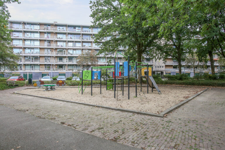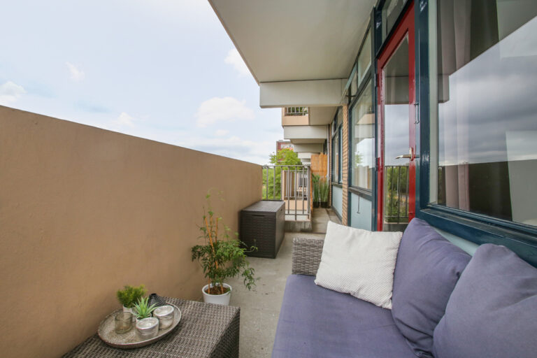 Via een galerij is het appartement bereikbaar (2e vanaf het begin van de galerij). Het appartement heeft een hal in 2 delen, een keuken met een moderne, complete inrichting met een gaskookplaat, een recirculatiekap, een vaatwasser, een koelkast en een combi-oven-magnetron. Achter de keuken is de grote berging gelegen waar ook het witgoed is opgesteld. De grote woonkamer van ca. 40 m2 heeft heerlijk veel daglicht en bestaat nu uit een eetkamer (voormalige derde slaapkamer met eigen deur naar de hal) en een grote zithoek die uitzicht biedt op het groen aan de overkant. Via de hal zijn verder het toilet (v.v. een hangcloset) en de badkamer met inloopdouche en wastafel bereikbaar. De twee slaapkamers (waarvan 1 met deur naar het balkon) liggen ook aan de Oostzijde van het appartement.