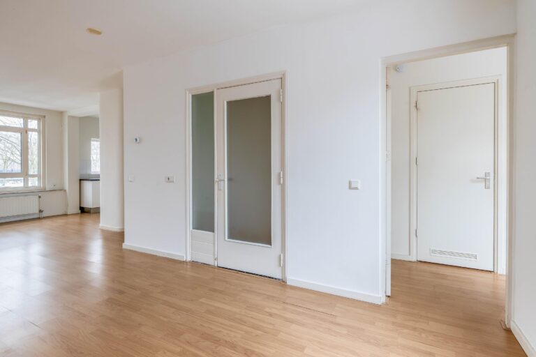 Vrijwel het gehele appartement is voorzien van een laminaatvloer. In de hal bevinden zich de meterkast en het toilet.