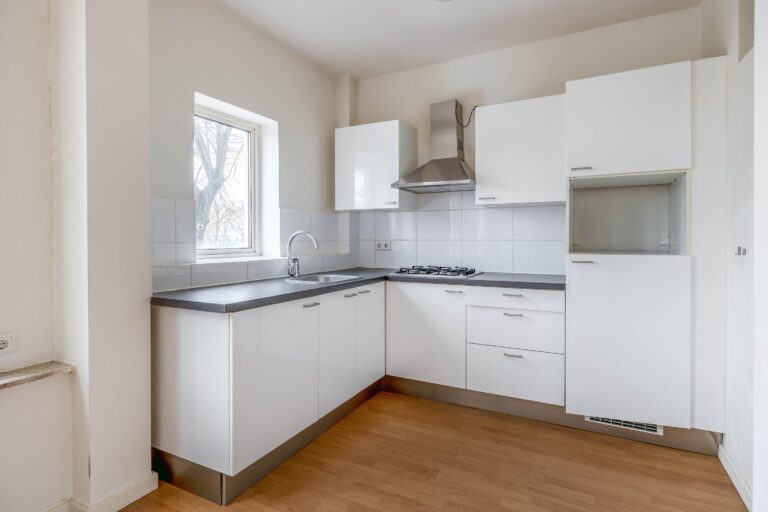 De ruime woonkamer heeft een fijne lichtinval door de grote ramen aan de voorzijde en de loopdeur naar het dakterras. Aan de voorzijde van de woonkamer bevindt zich de open keuken, uitgerust met een 4-pits gaskookplaat, afzuigkap en koelkast.