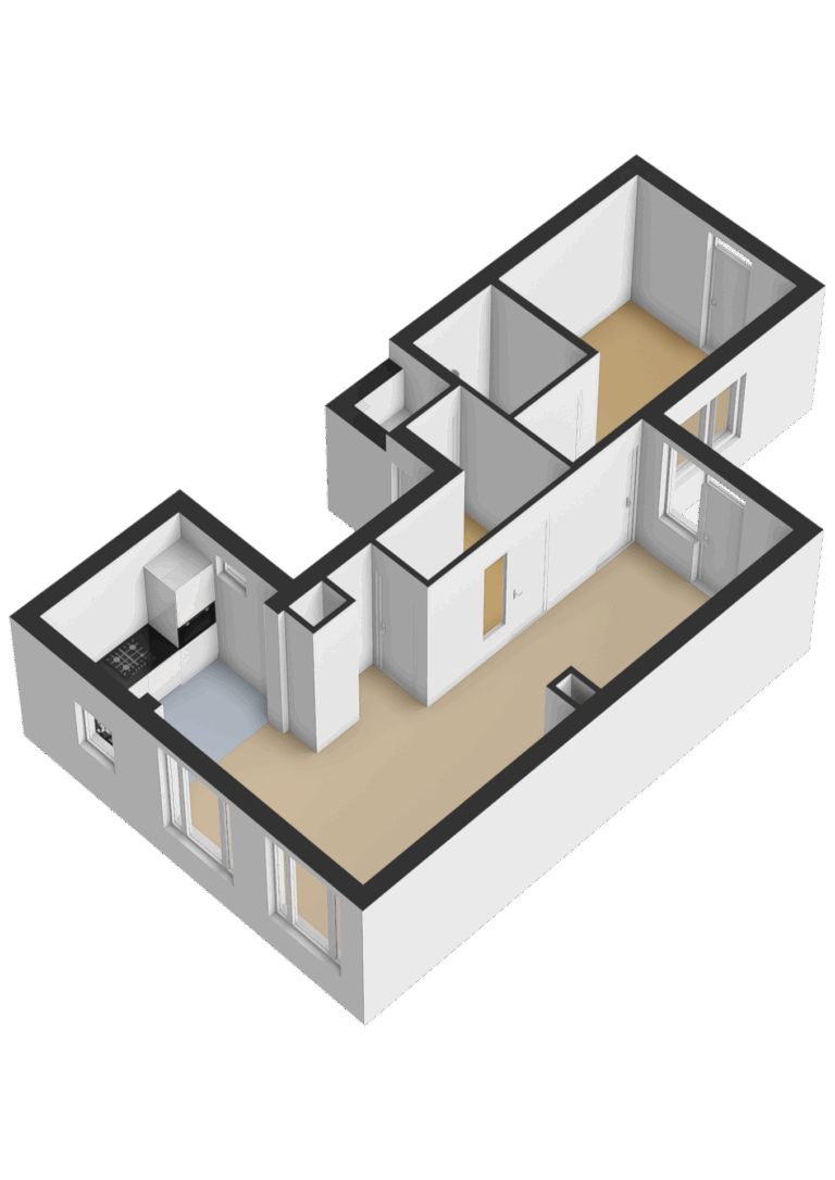 De ruime en lichte woonkamer vormt samen met de open keuken het hart van het appartement. Dankzij de vele ramen en de loopdeur naar het dakterras geniet je hier van een prettige sfeer en veel daglicht. Het appartement beschikt over één ruime slaapkamer en een royale buitenruimte waar je heerlijk kunt ontspannen.