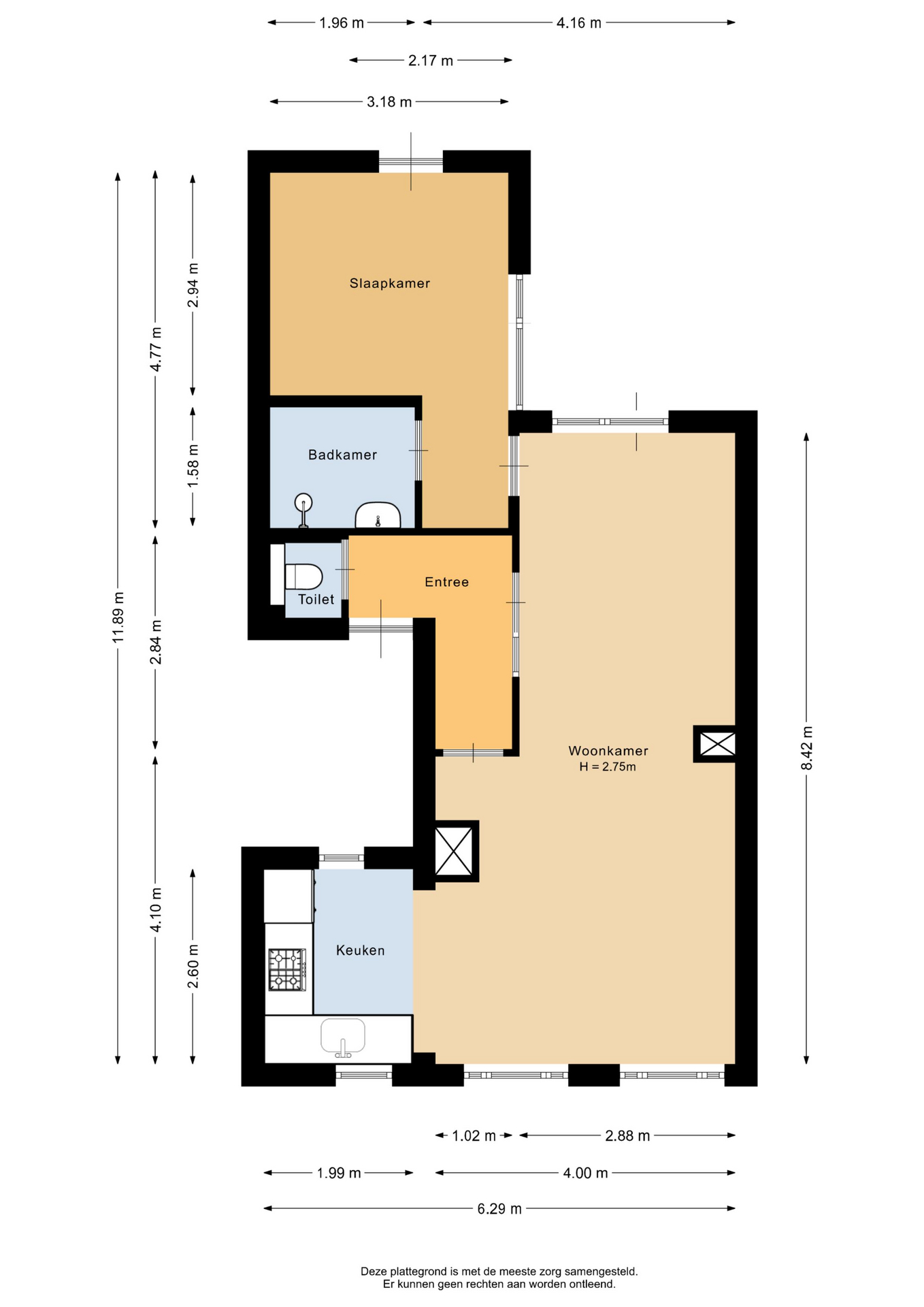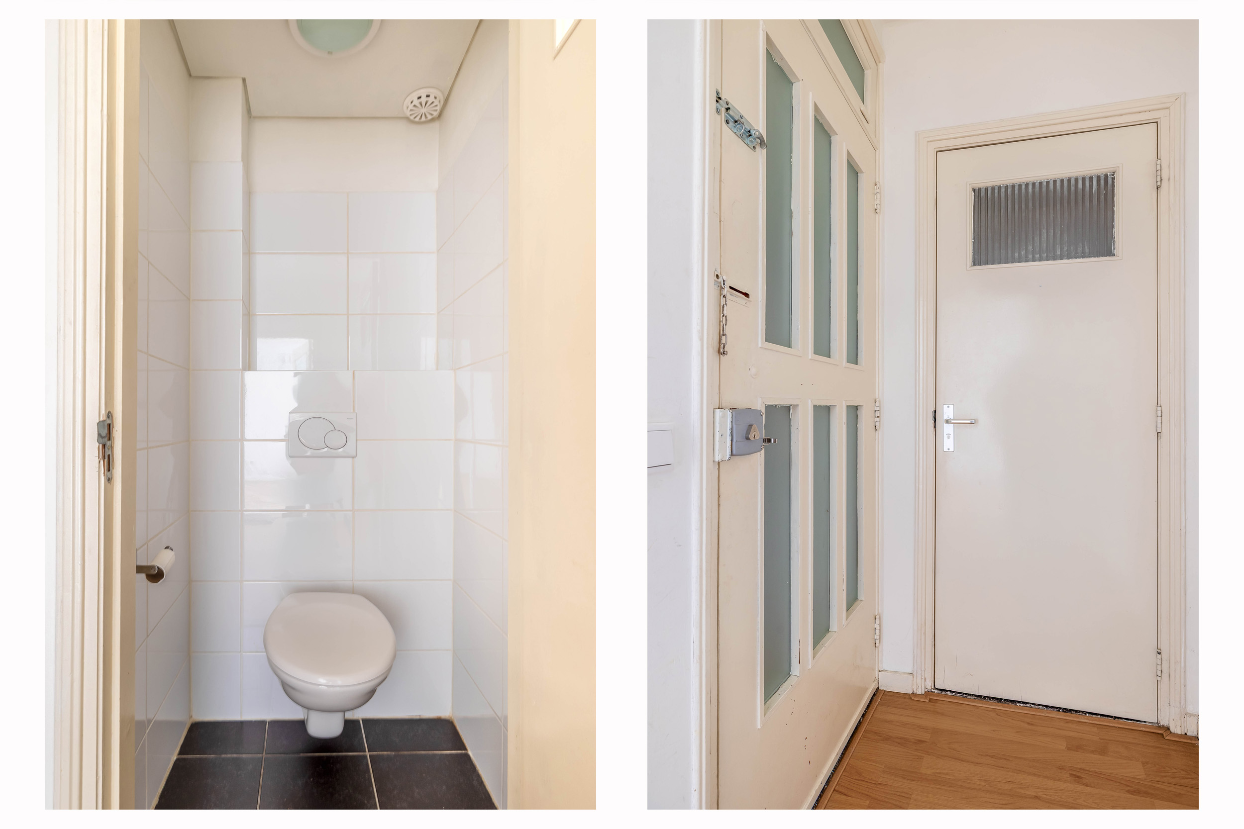 Vrijwel het gehele appartement is voorzien van een laminaatvloer. In de hal bevinden zich de meterkast en het toilet.