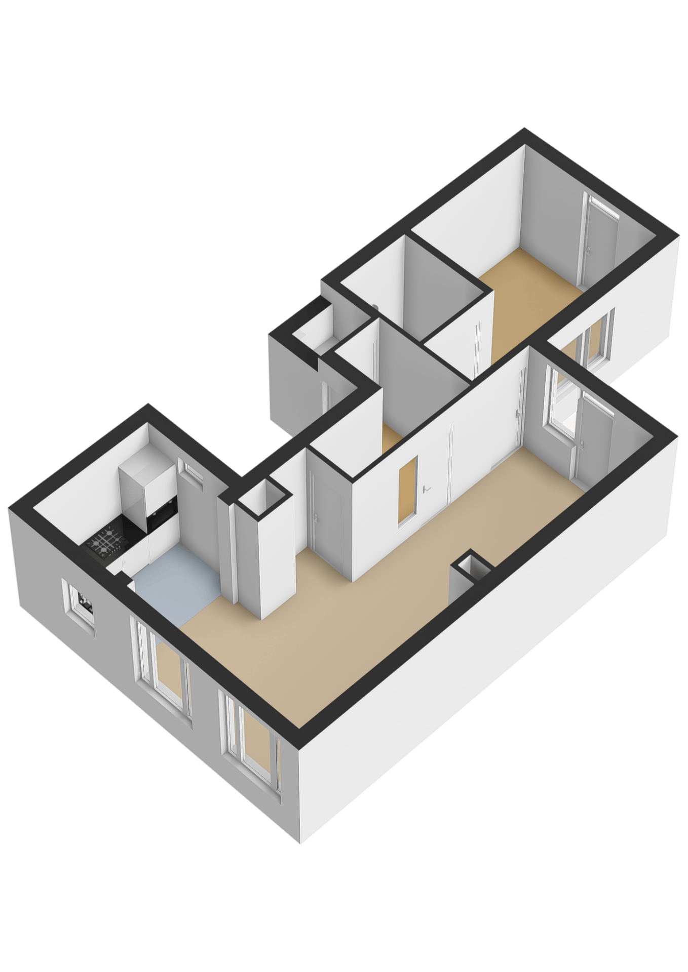 De ruime en lichte woonkamer vormt samen met de open keuken het hart van het appartement. Dankzij de vele ramen en de loopdeur naar het dakterras geniet je hier van een prettige sfeer en veel daglicht. Het appartement beschikt over één ruime slaapkamer en een royale buitenruimte waar je heerlijk kunt ontspannen.