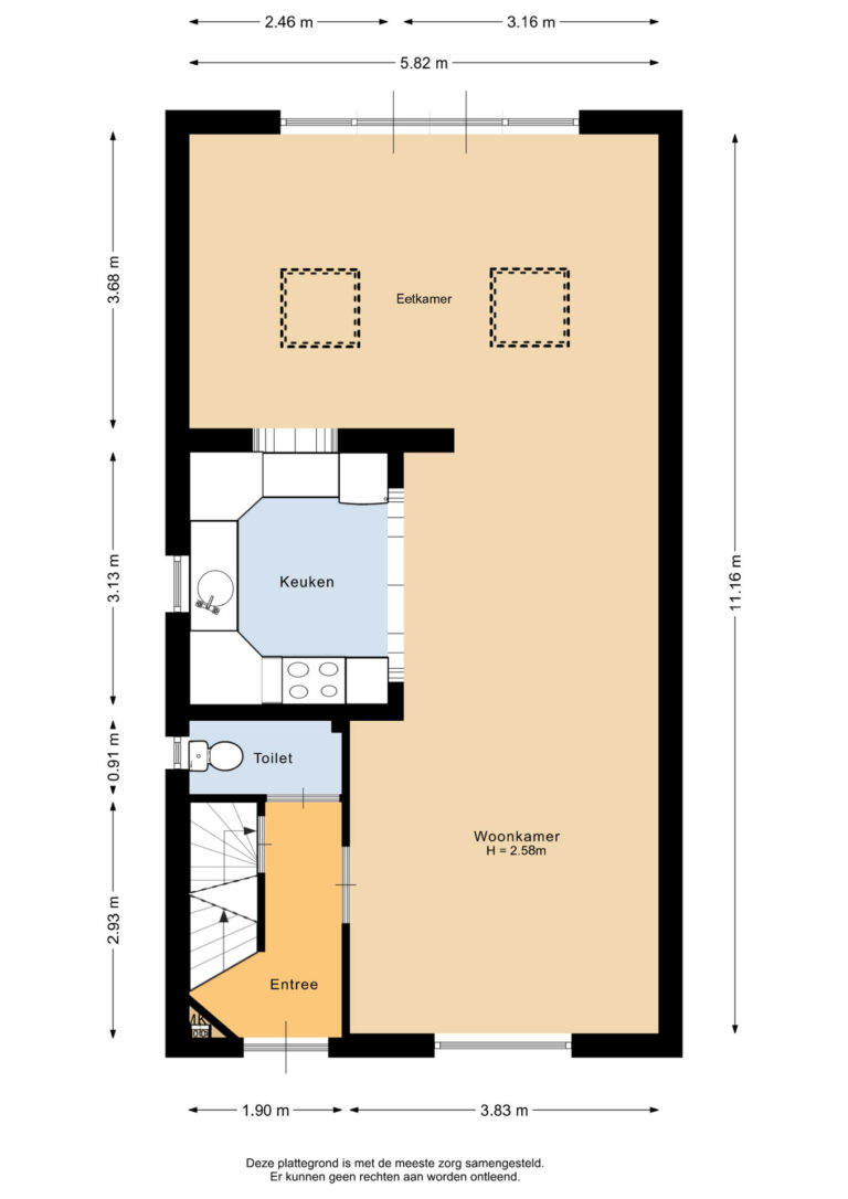 Deze ruime hoekwoning is aan de achterzijde uitgebouwd en biedt daardoor een comfortabele leefruimte met een heerlijke L-vormige woonkamer en open keuken. De aanbouw is voorzien van vloerverwarming.