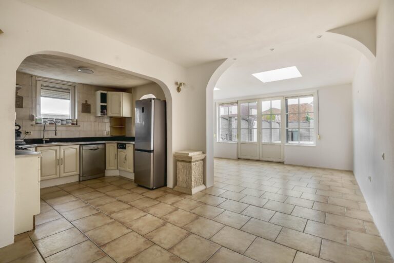 De achtertuin is volledig betegeld en beschikt over een vrije achterom aan de zijkant.