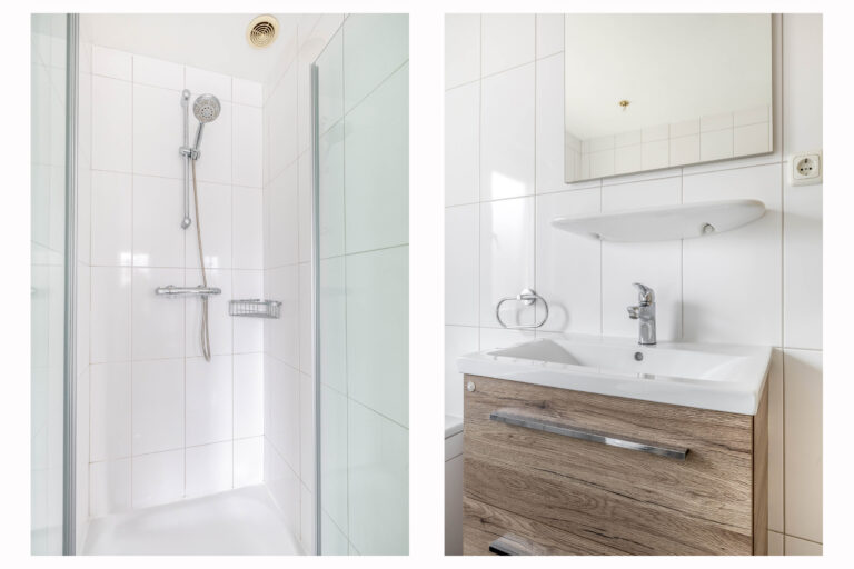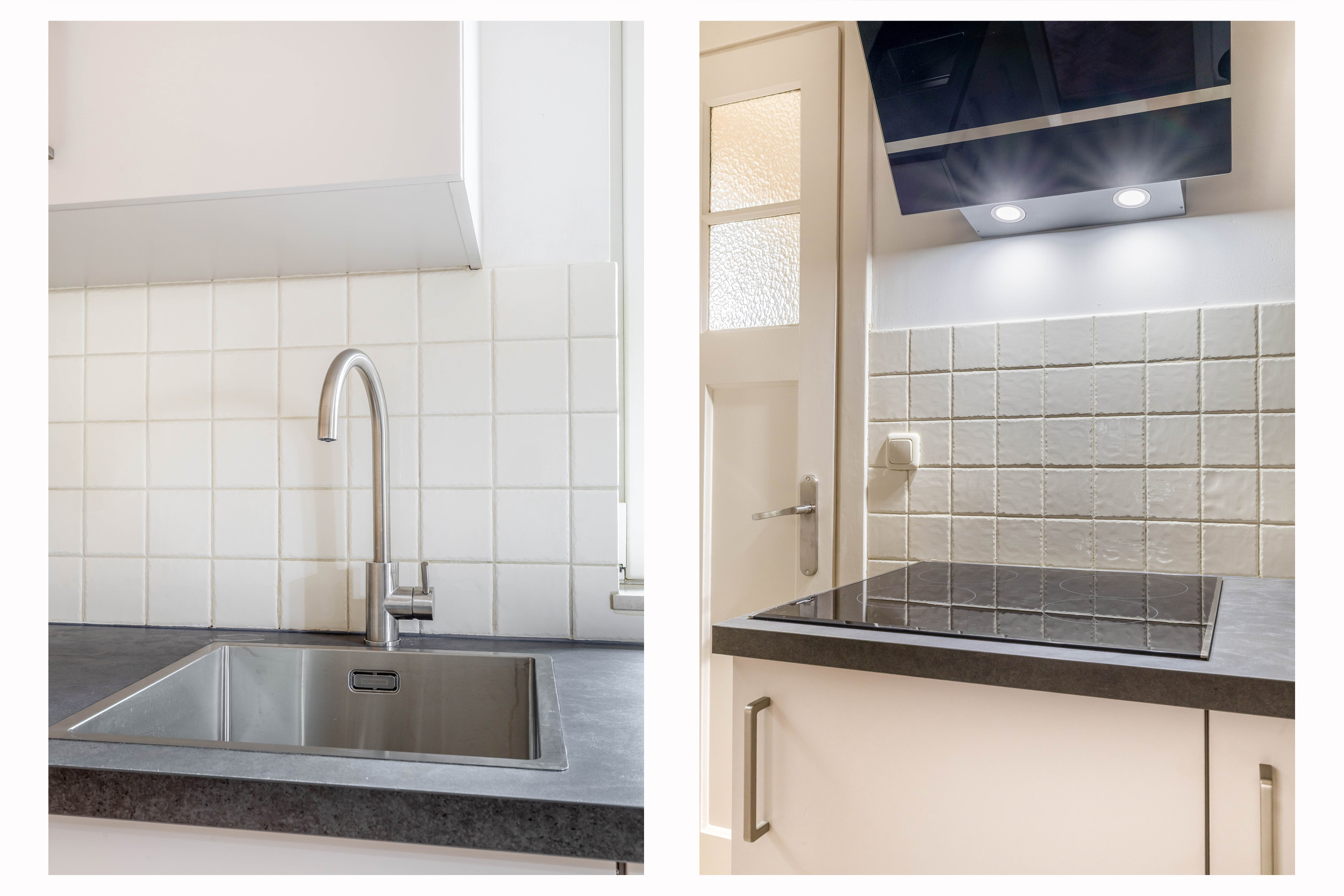 De gloednieuwe, dichte keuken is stijlvol afgewerkt en van alle gemakken voorzien, waaronder een inductiekookplaat, afzuigkap, spoelbak en koelkast. Vanuit de keuken bereik je de praktische bijkeuken met witgoedaansluiting, warm- en koudwaterkraan en extra bergruimte op de vliering. Ook vind je hier toegang tot de kelder en de tuin. Op de begane grond is daarnaast een apart toilet met fonteintje aanwezig.