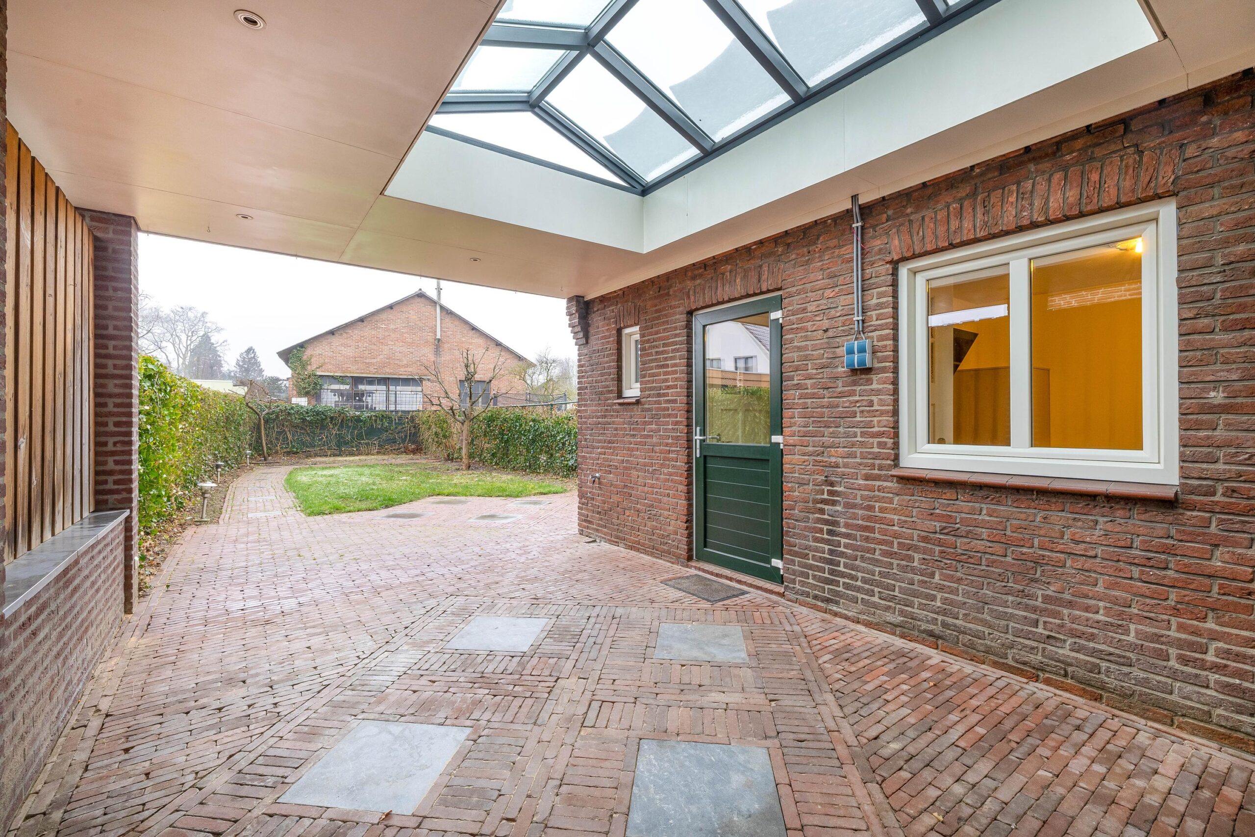 De zonnige achtertuin, gelegen op het zuidwesten, is verzorgd aangelegd en beschikt over een vrije achterom. Onder de fraaie overkapping met lichtstraat geniet je hier tot in de late uurtjes van het buitenleven, een heerlijke plek om te ontspannen of gezellig samen te komen.