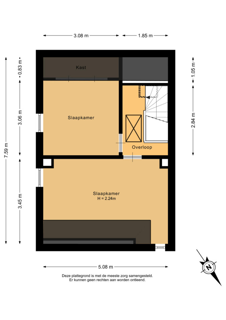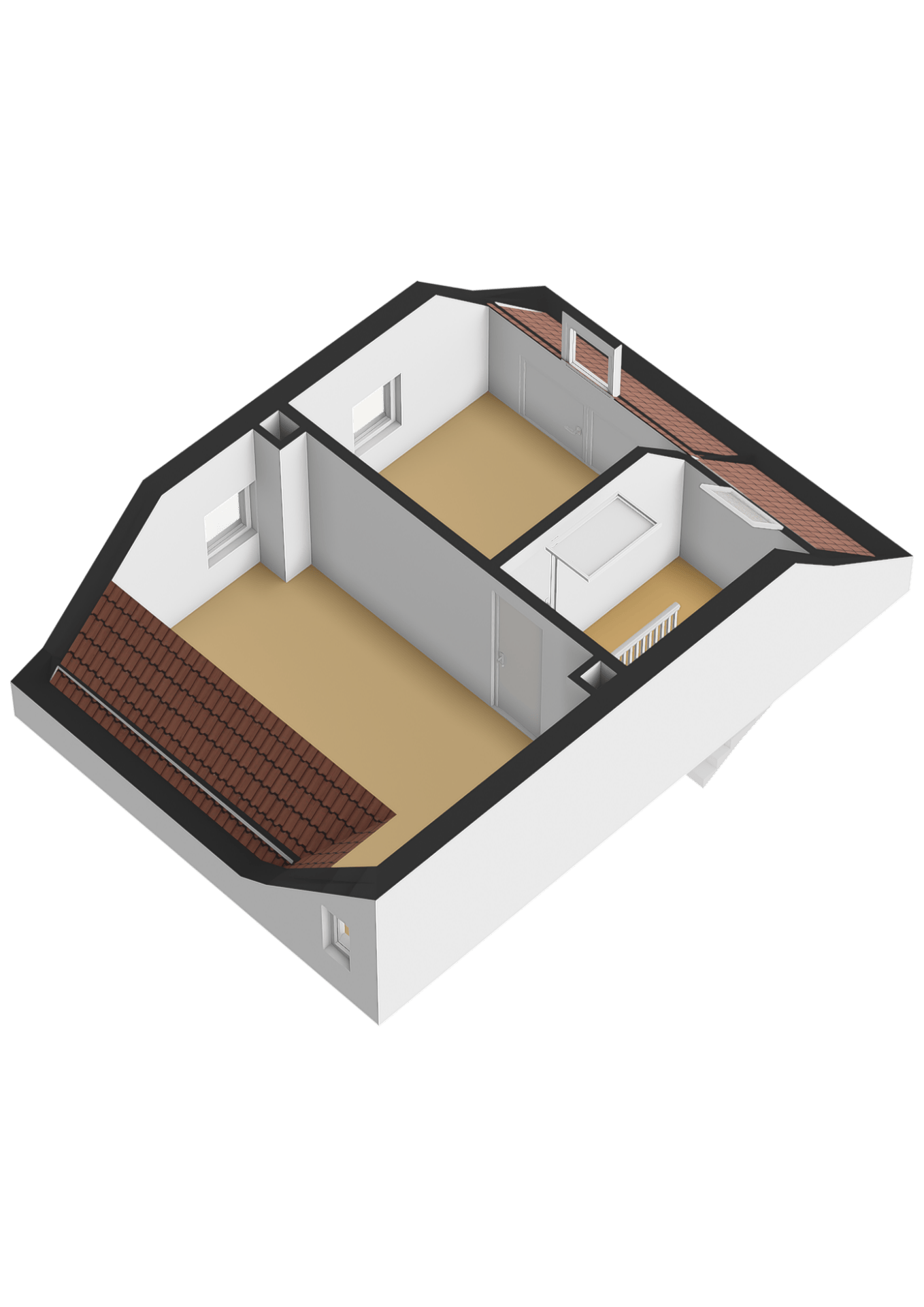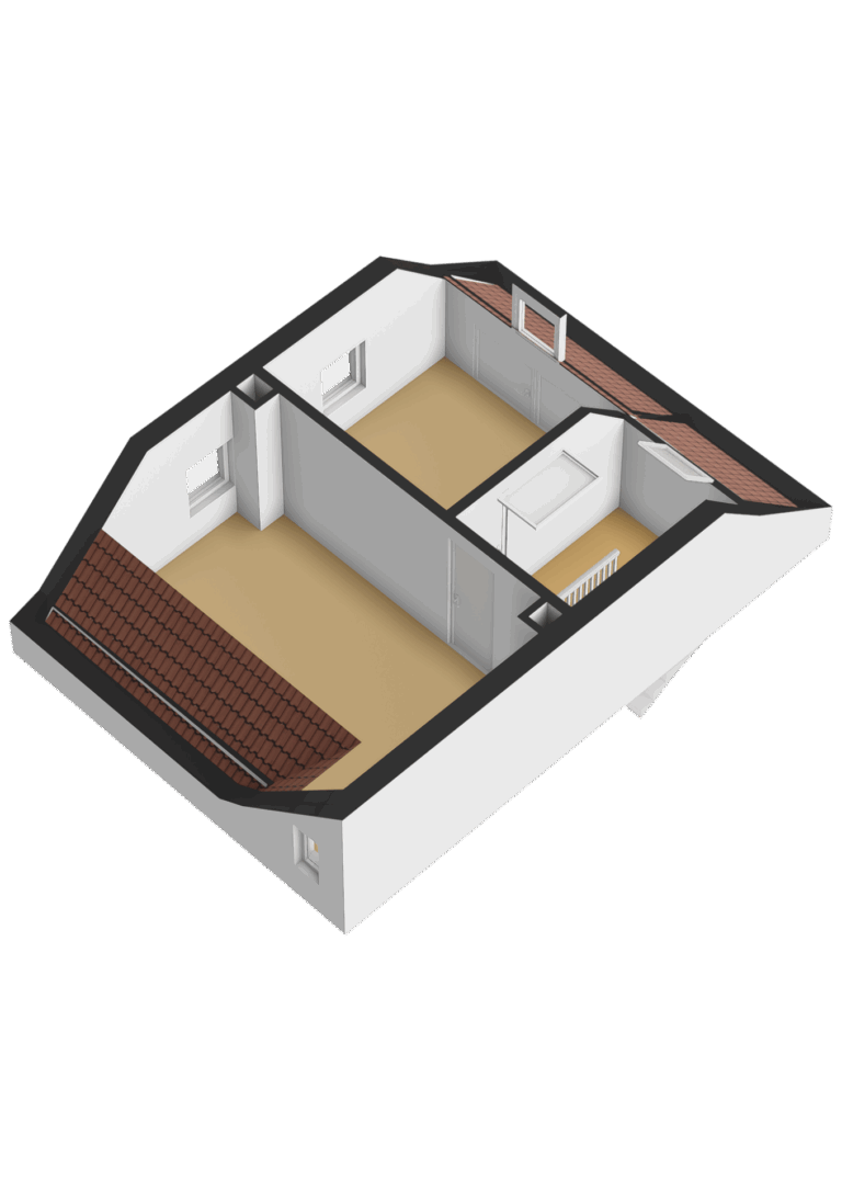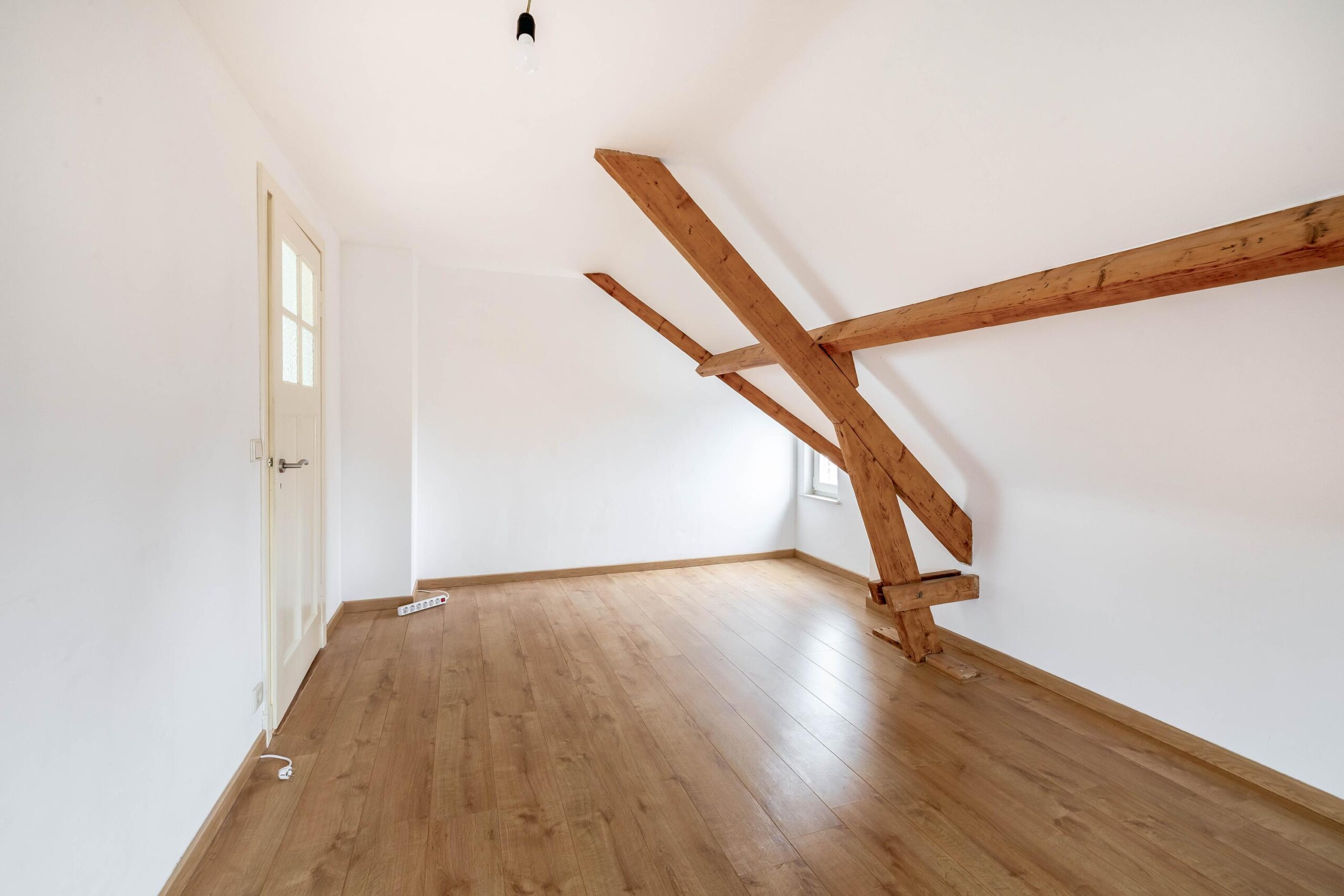 Via een vaste trap bereik je de tweede verdieping met nog eens twee slaapkamers. Eén kamer heeft prachtige authentieke houten balken die de charme van de woning extra benadrukken. De andere kamer beschikt over praktische bergruimte achter de knieschotten. Op de extra vliering bevindt zich de HR-107 cv-ketel.