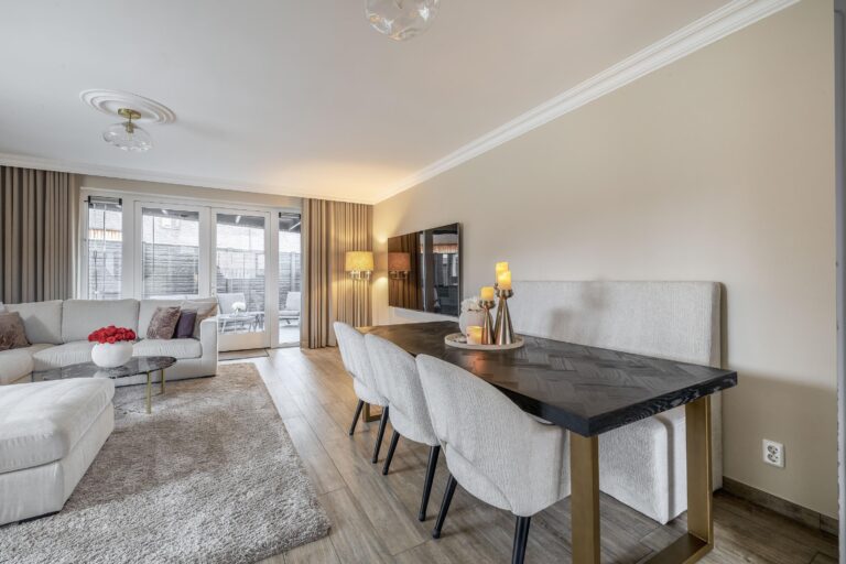– Meubels en raambekleding zijn zo goed als nieuw en veel is beschikbaar ter overname.