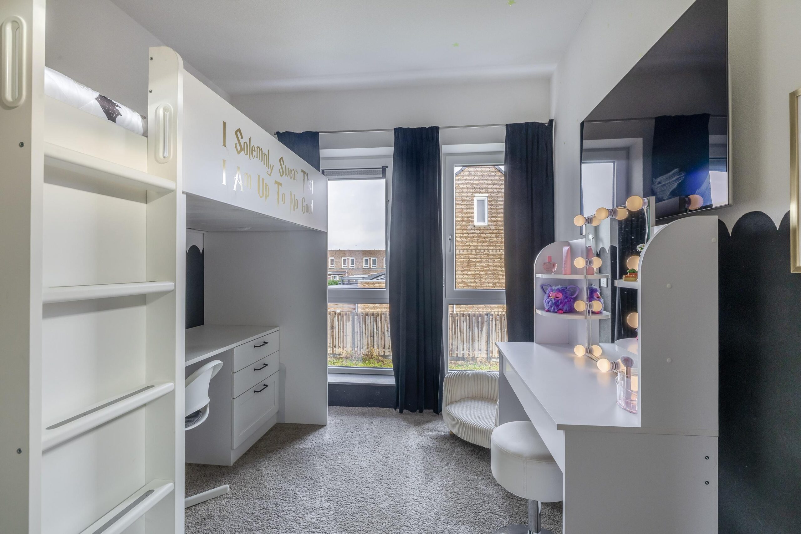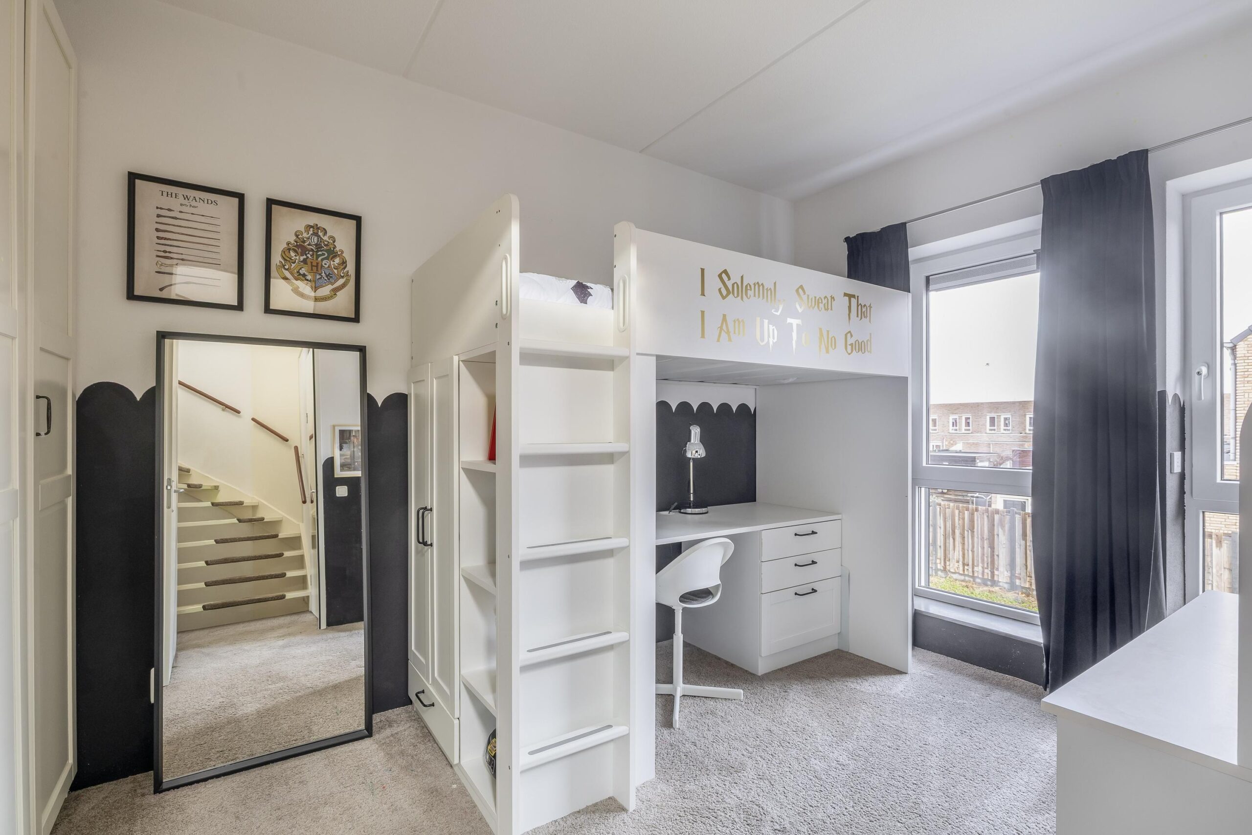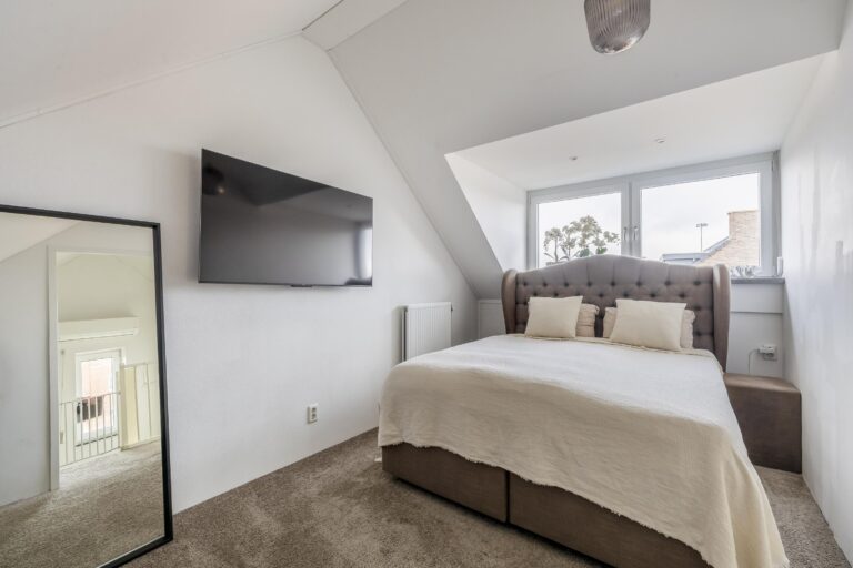 Op de 1ste verdieping vind je 3 slaapkamers en een badkamer met inloopdouche met regendouche en zitje, toilet en dubbel wastafelmeubel. De 2de verdieping is bereikbaar via de vaste trap en heeft een volwaardige 4de slaapkamer met een grote dakkapel. Op deze verdieping is tevens een aparte wasruimte aanwezig.