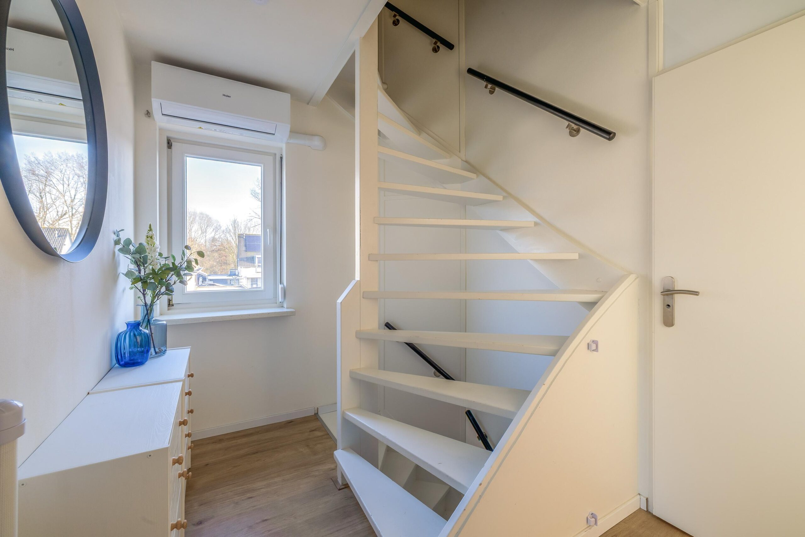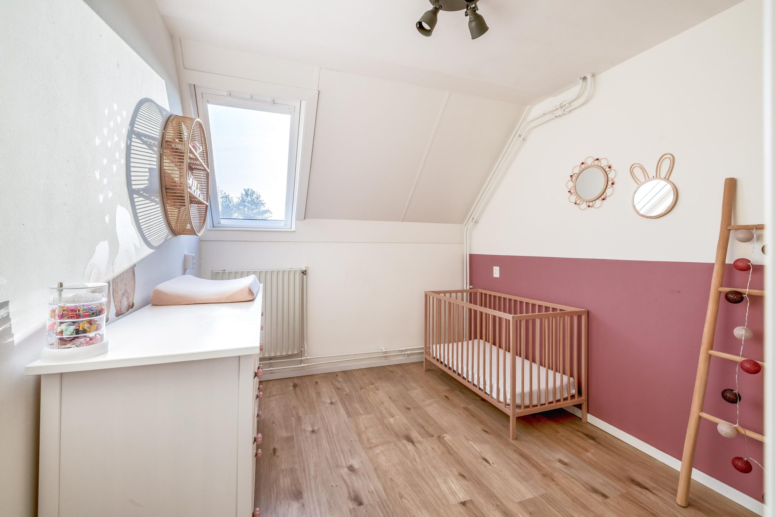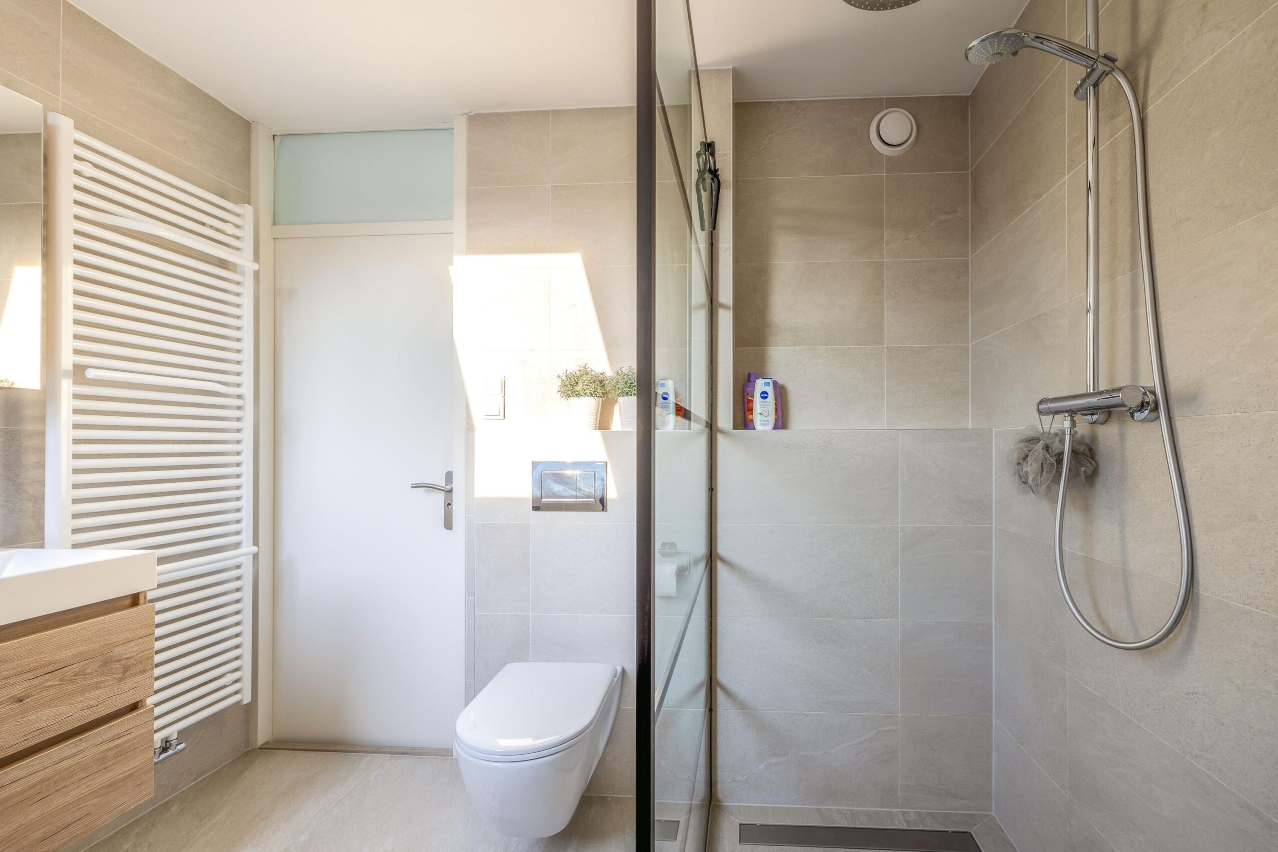Op de eerste verdieping bevinden zich drie ruime slaapkamers. Alle slaapkamers zijn voorzien van elektrische rolluiken en een laminaatvloer. De slaapkamers aan de voorzijde hebben een dakkapel. De moderne badkamer is ingericht met een inloopdouche, dubbele wastafel met meubel, toilet en mechanische ventilatie. Op de overloop is een airco geplaatst voor extra comfort, zowel in de zomer als winter.