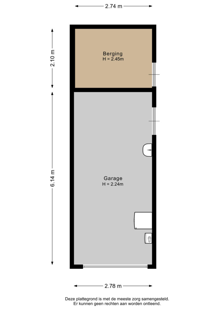 De vrijstaande stenen garage is voorzien van een stalen kanteldeur, elektriciteit en een wateraansluiting. Aangrenzend bevindt zich een separate berging, geschikt voor fietsen en opslag.