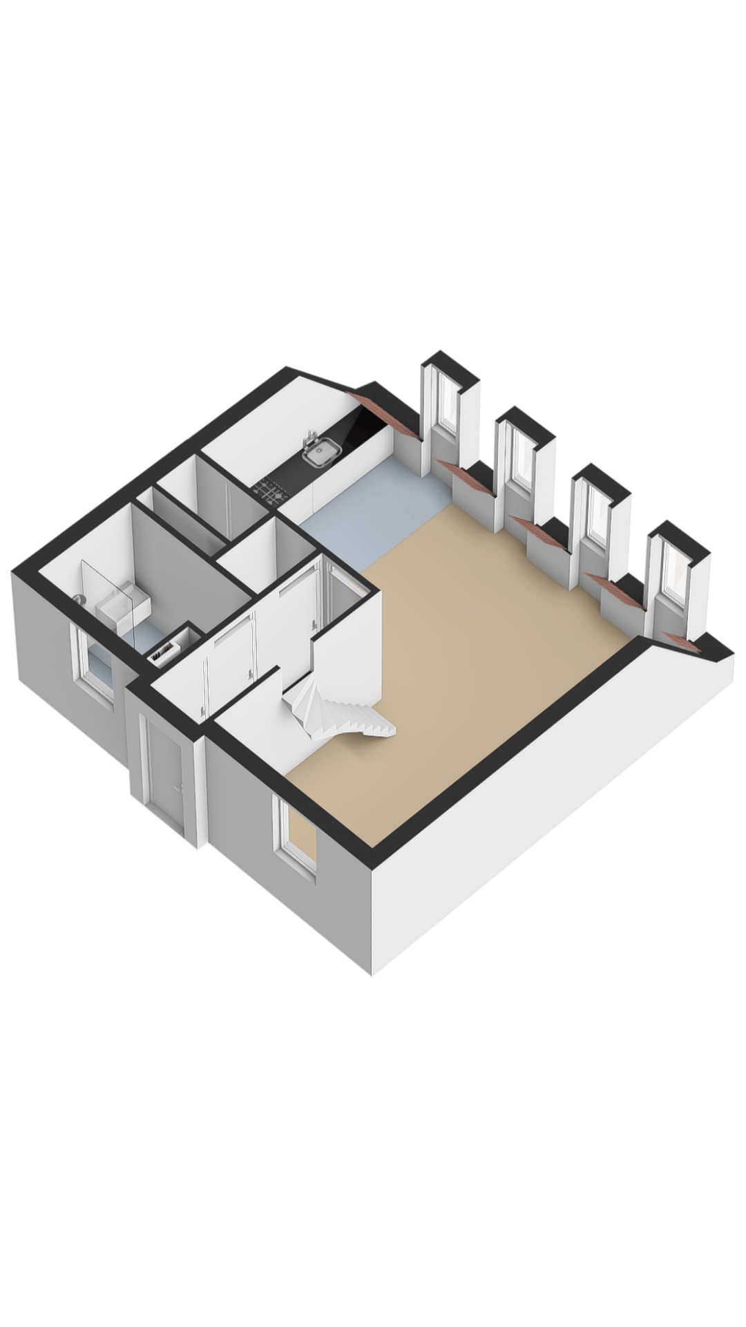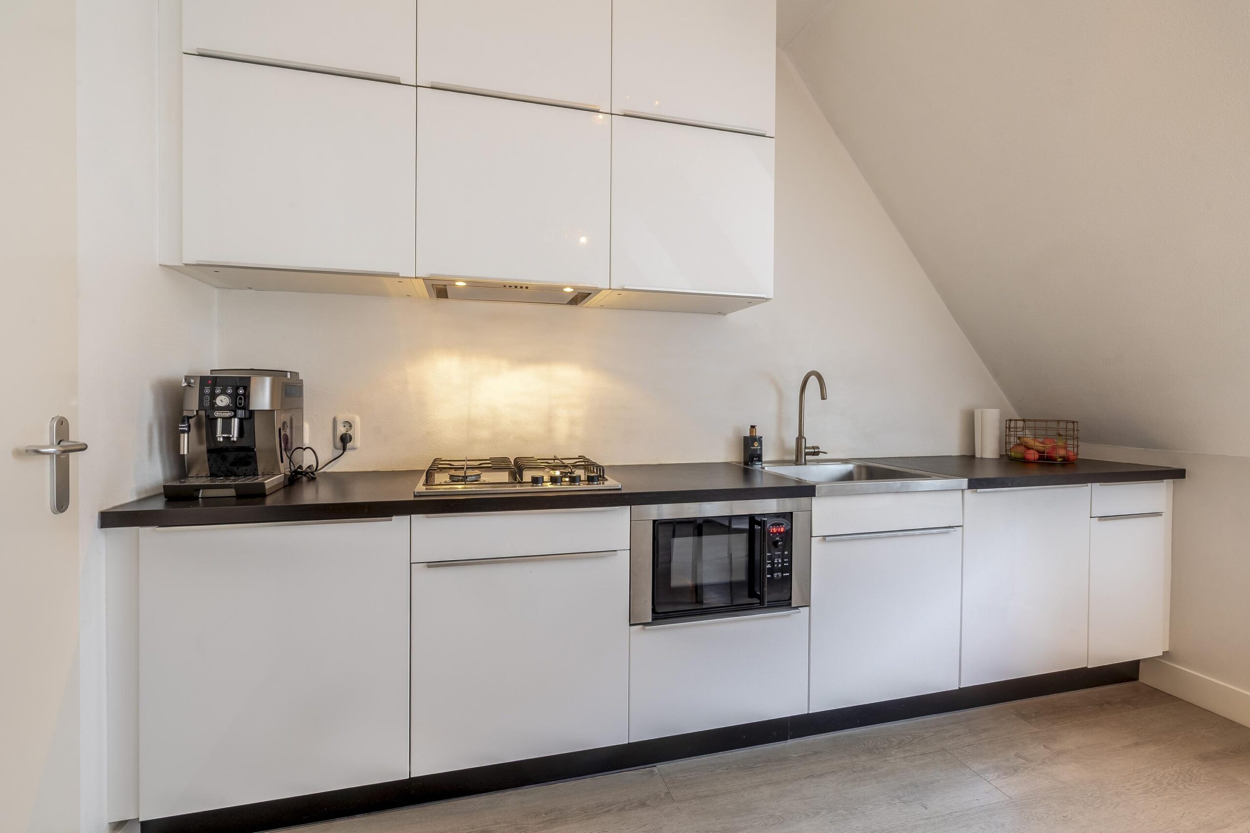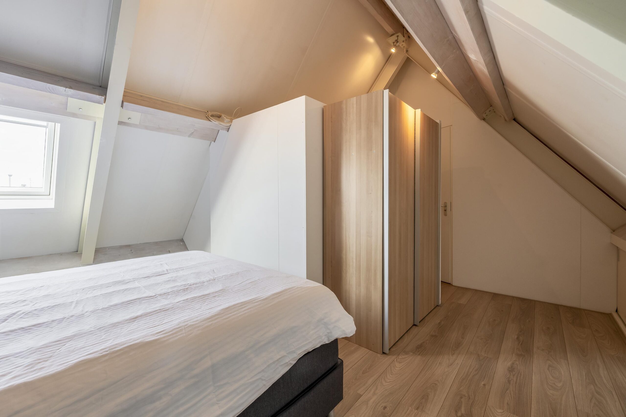 Binnen vind je een lichte woonkamer met open keuken, een moderne badkamer met inloopdouche en een verdieping met een grote slaapkamer met veel bergruimte en een tweede kamer die ideaal is als kantoor of bijvoorbeeld logeerkamer!