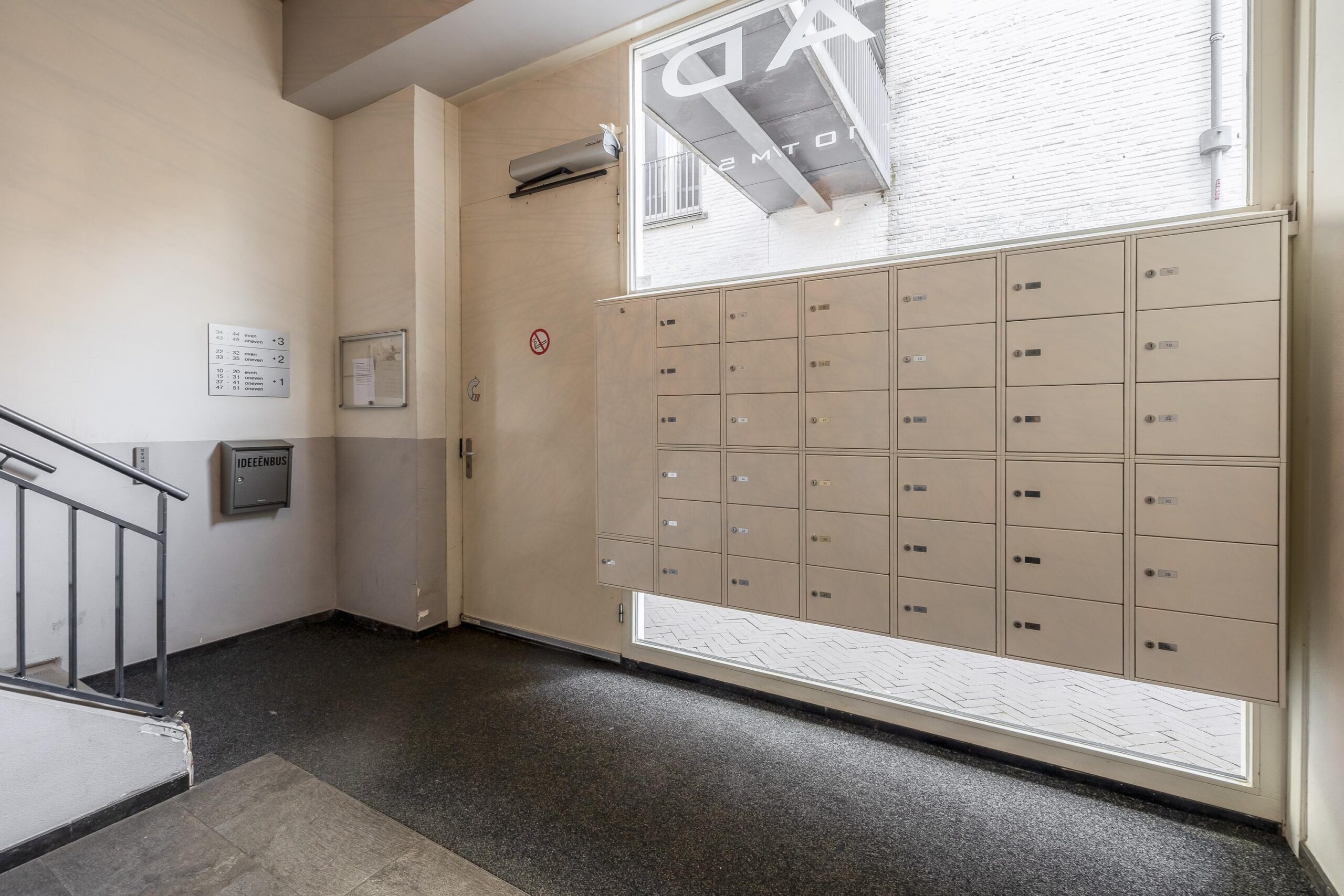 Centrale entree met brievenbussen, lift en trappenhuis.