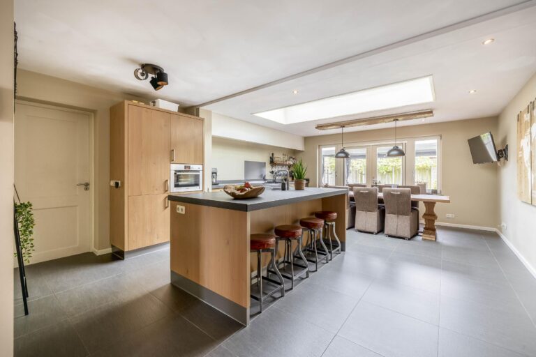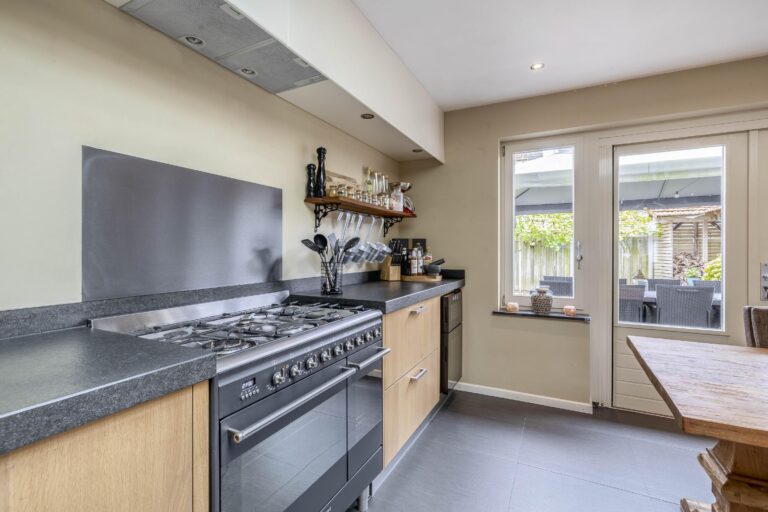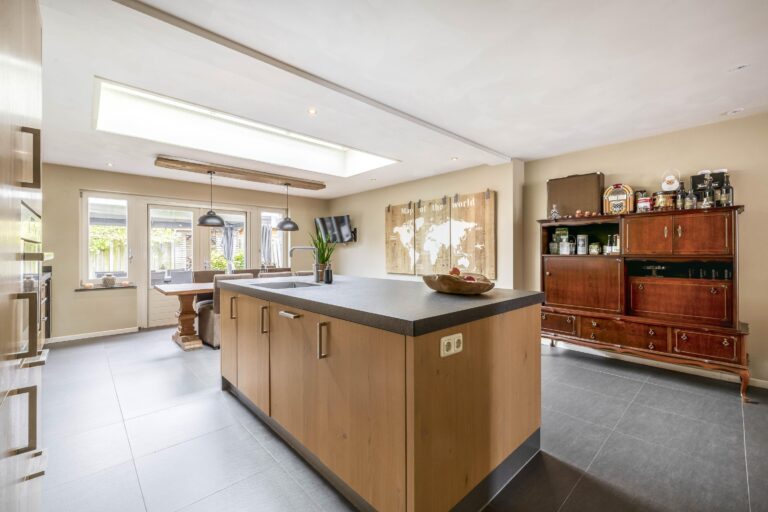 Binnen word je verrast door de ruime woonkamer en de aangebouwde leefkeuken met groot eiland en lichtkoepel – een heerlijke plek om te koken of te borrelen. Verder vind je op de begane grond een royale berging. Verdeeld over de twee verdiepingen zijn maar liefst vier slaapkamers en een moderne badkamer te vinden.