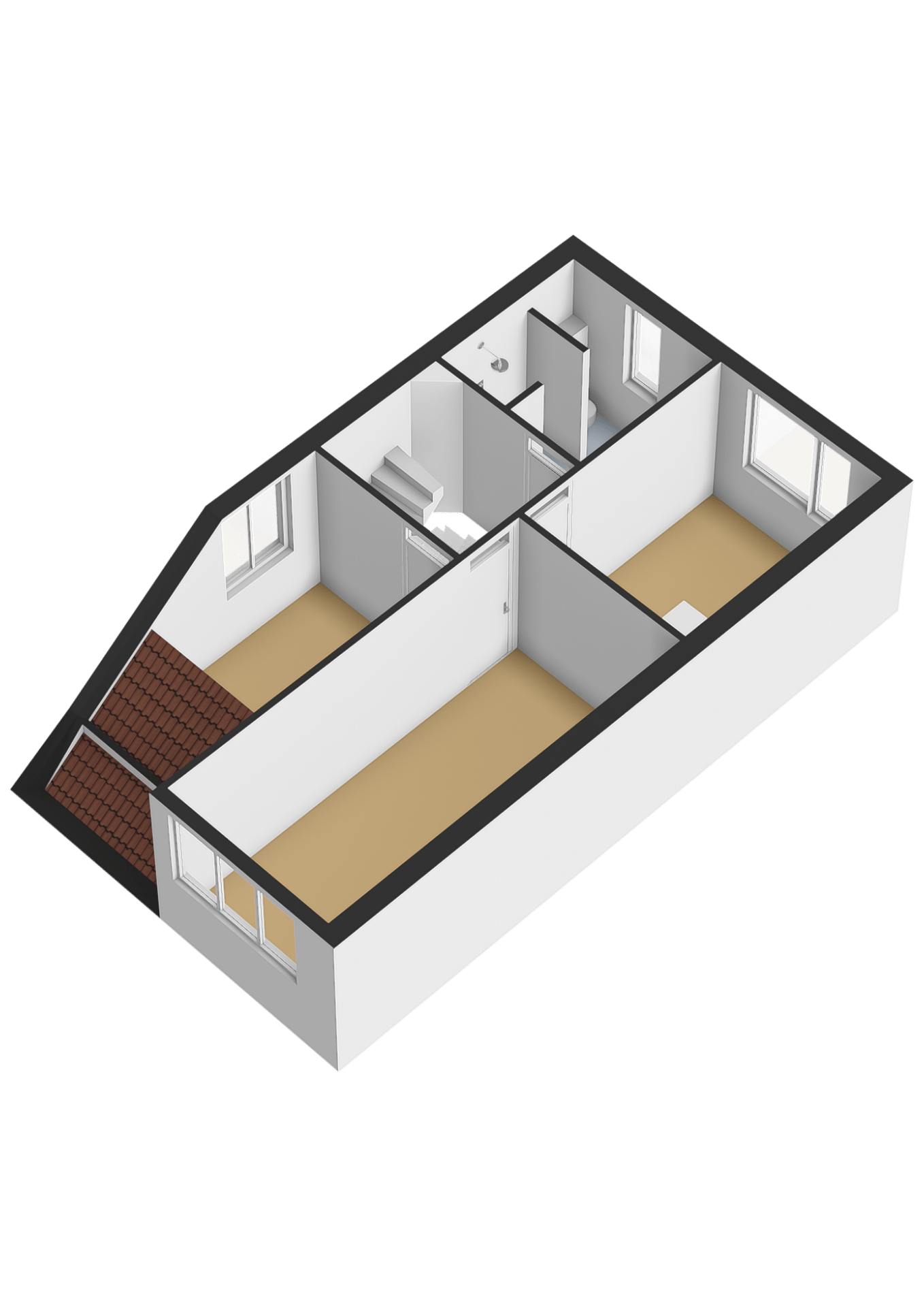 De vierde slaapkamer is ruim en biedt veel opbergruimte. Twee dakramen met screens zorgen voor veel daglicht op dze verdieping.
