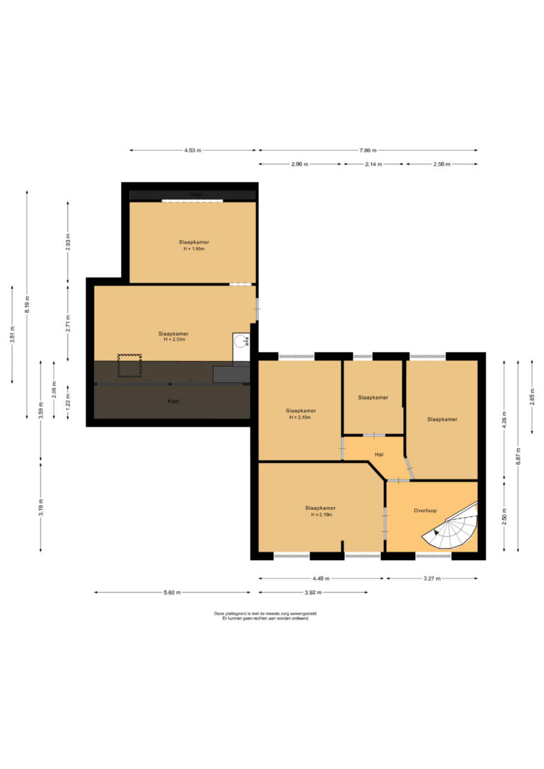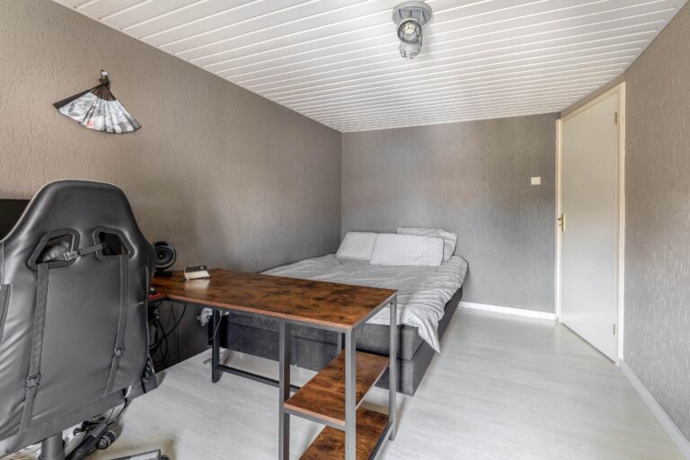 Vanuit de overloop zijn de drie slaapkamers en de berging bereikbaar. In de berging zijn de cv-ketel en de omvormer van de zonnepanelen geplaatst.
