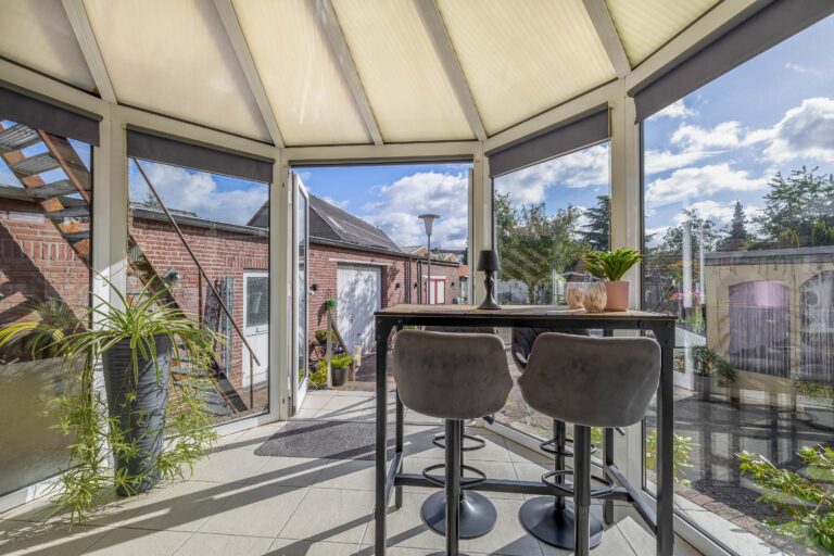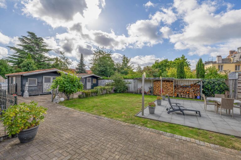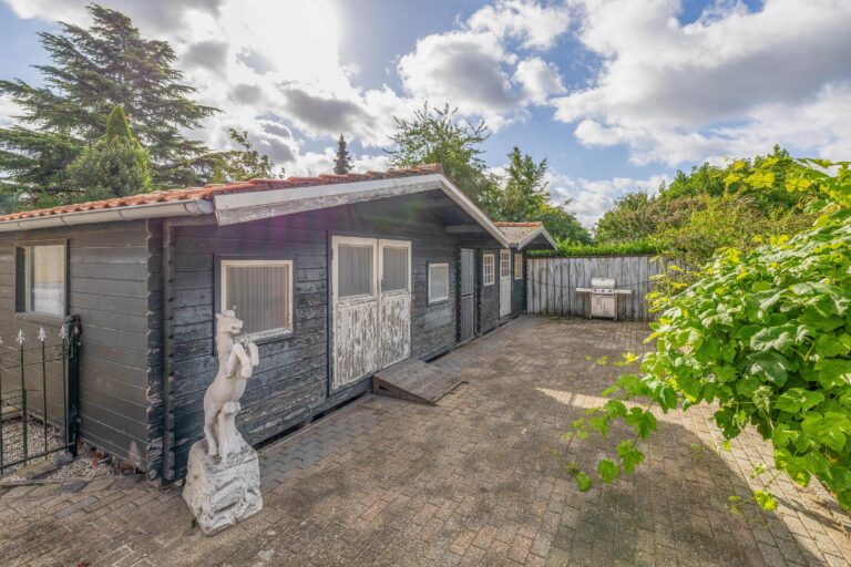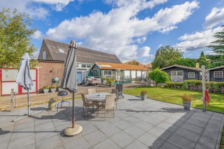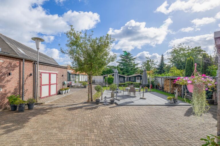 – Royaal perceel met meerdere garages, tuinhuisjes en een werkplaats.