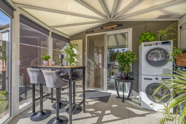 Achterin bevindt zich de wasruimte. Deze is voorzien van de cv-ketel, de witgoedaansluiting, een vuilwaterstortbak en een loopdeur naar de tuin. Tevens is vanuit hier de kruipruimte toegankelijk.