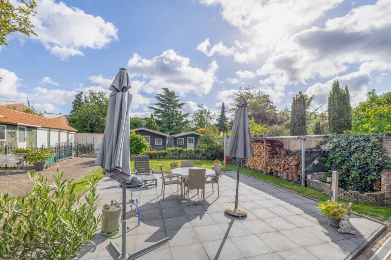 Door de grootte en de bijgebouwen is de tuin ideaal voor wie bijvoorbeeld een eigen bedrijf of meerdere auto’s heeft. De brede achterom naast de woning biedt vrije toegang tot de tuin.