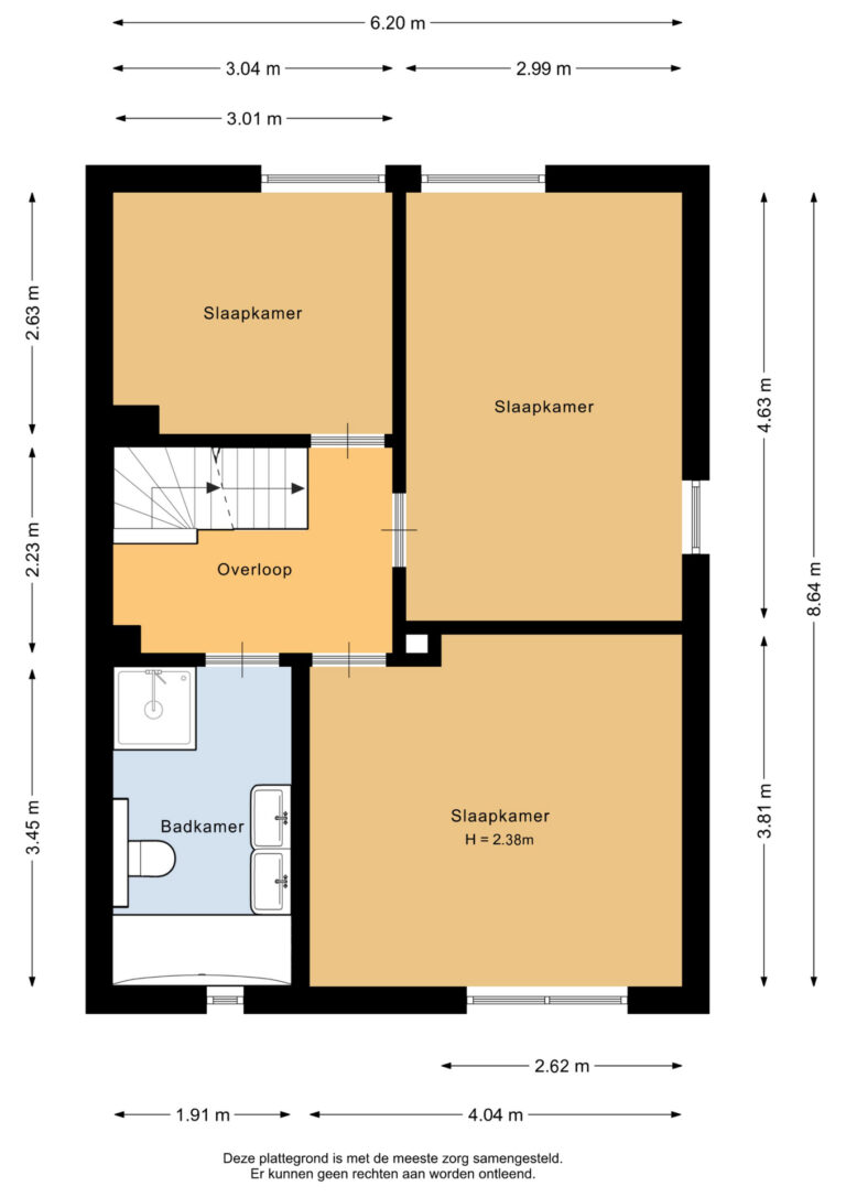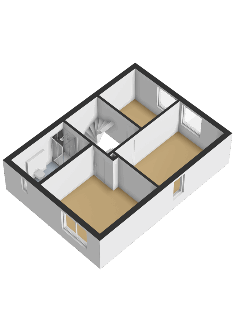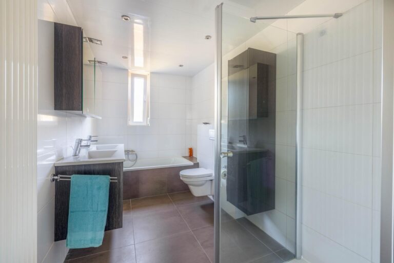 Twee slaapkamers zijn voorzien van een laminaatvloer en de andere slaapkamer heeft vloerbedekking. In de moderne badkamer (ca. 7m²) zijn een ligbad, douche, toilet, dubbele wastafel met meubel en designradiator aanwezig. Het raam zorgt voor daglicht en natuurlijke ventilatie.