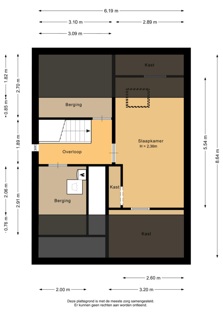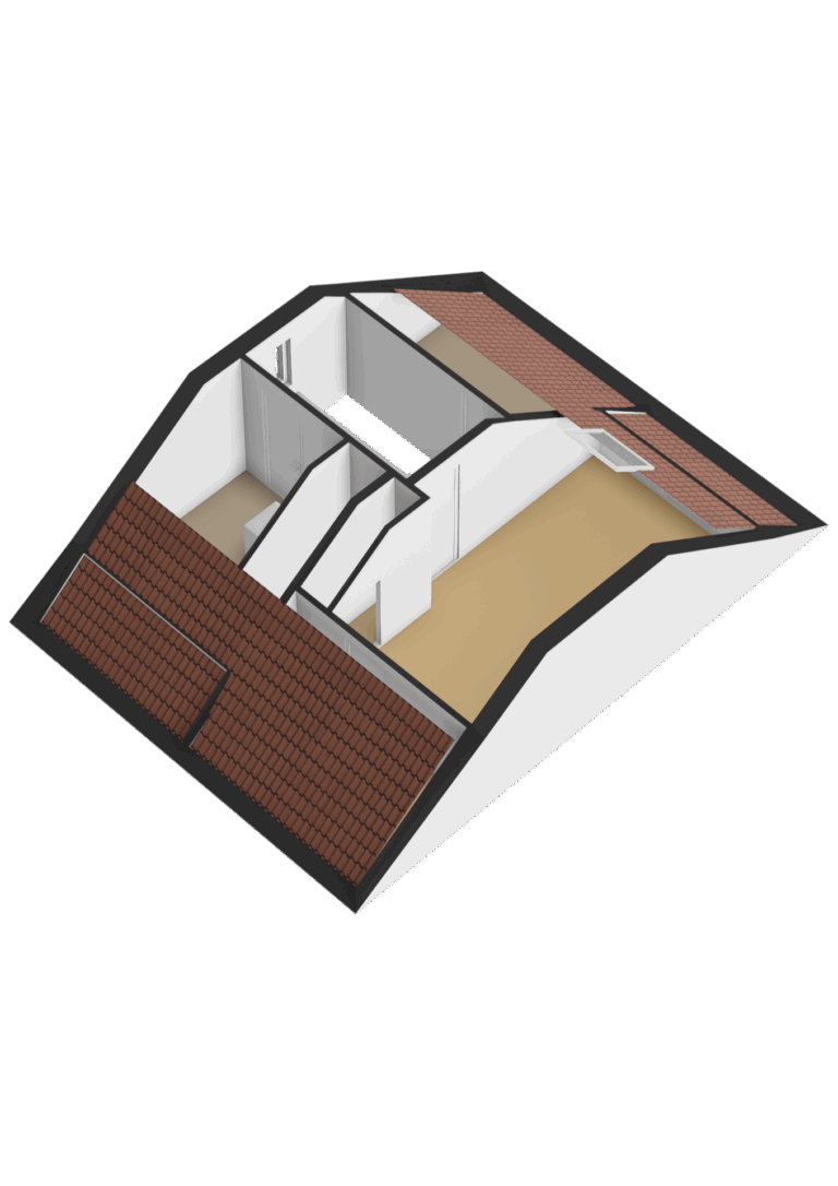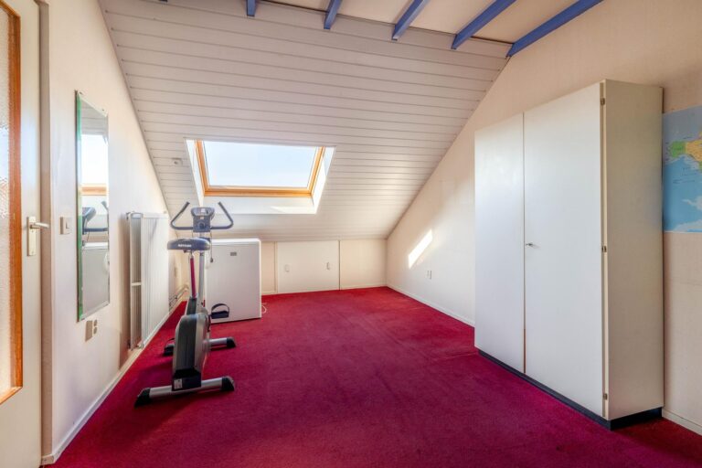 De 2de verdieping is bereikbaar door middel van een vaste trap. Op de overloop en slaapkamer ligt vloerbedekking. De slaapkamer (ca. 13m²) is daarnaast voorzien van een Velux dakraam, bergruimte en een vliering.