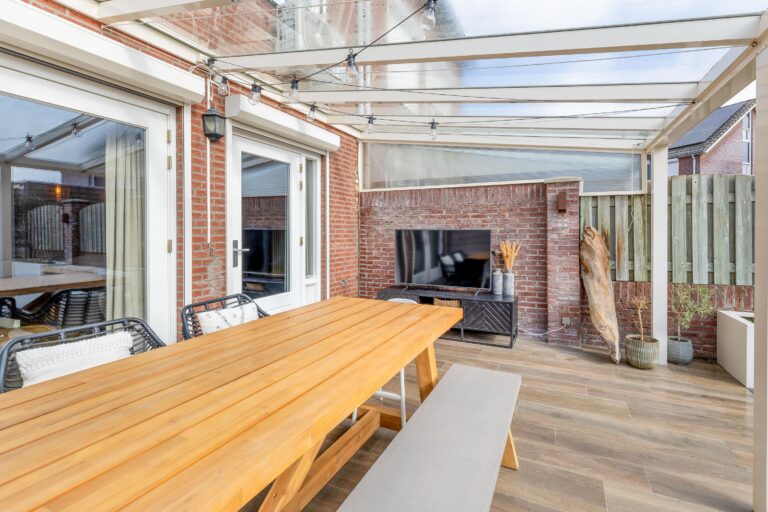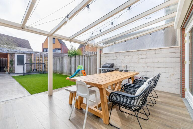 • De overkapping aan het huis is in 2025 voorzien van volledig nieuwe rubbers en de glasplaten zijn opnieuw geplaatst en vastgezet