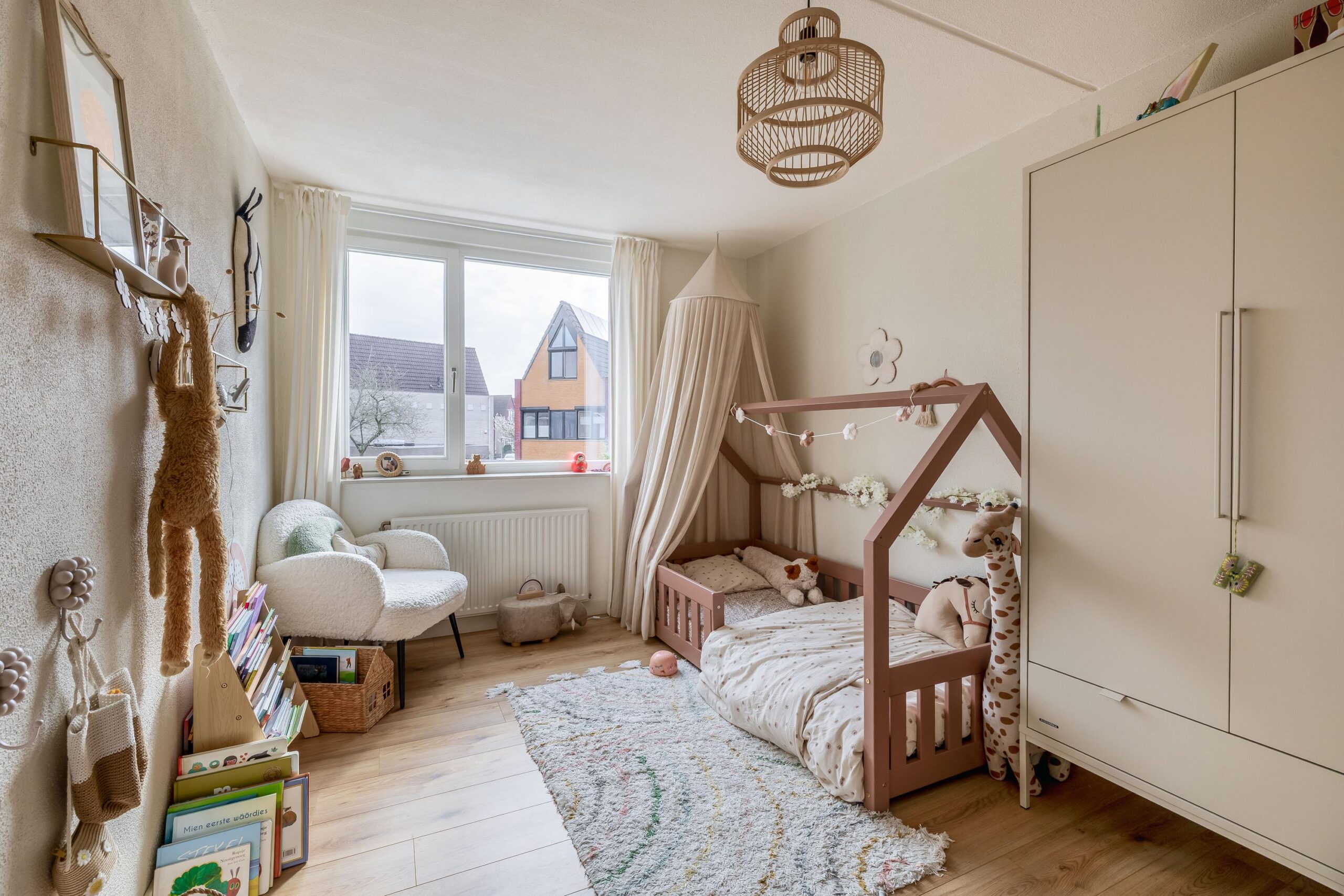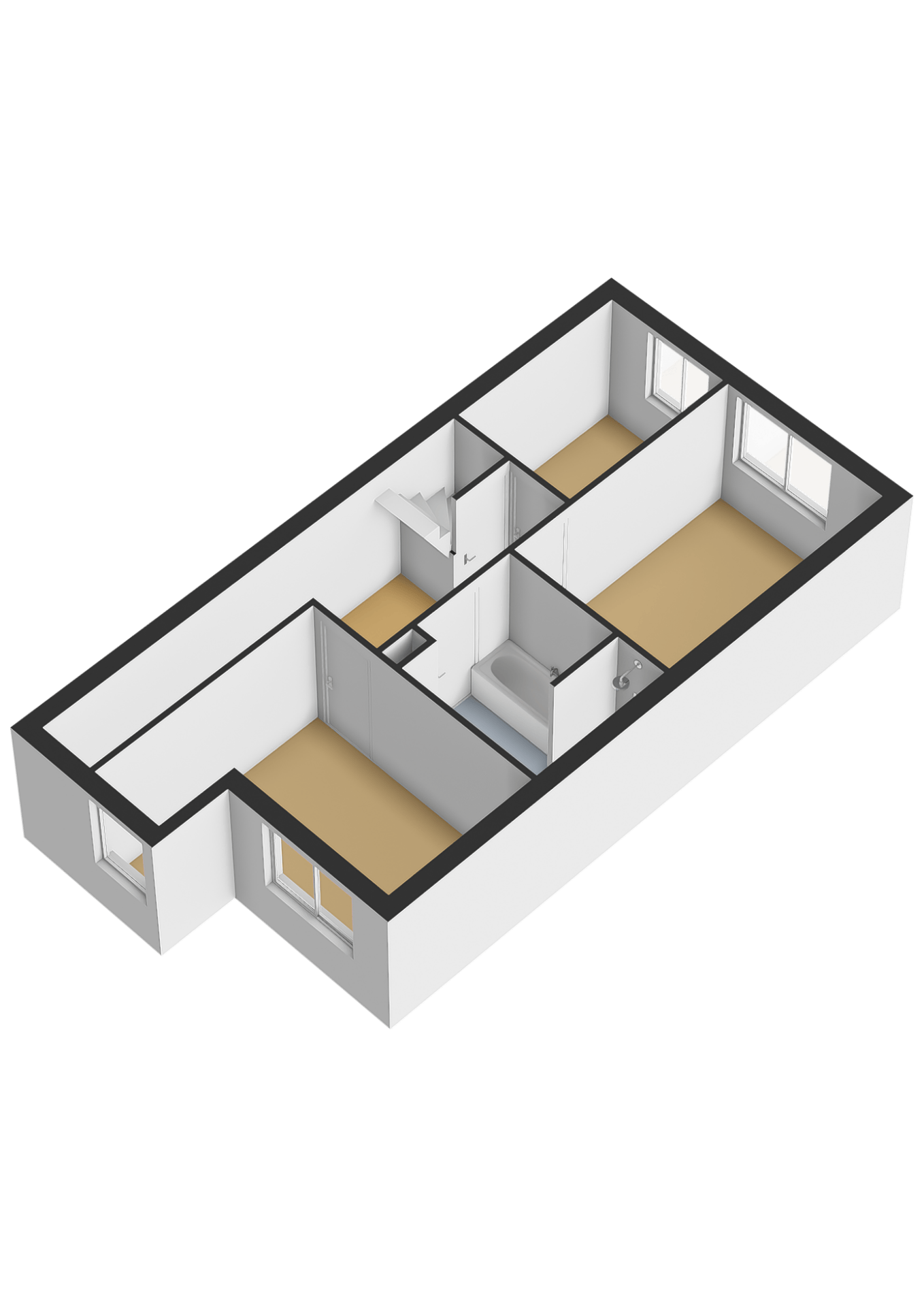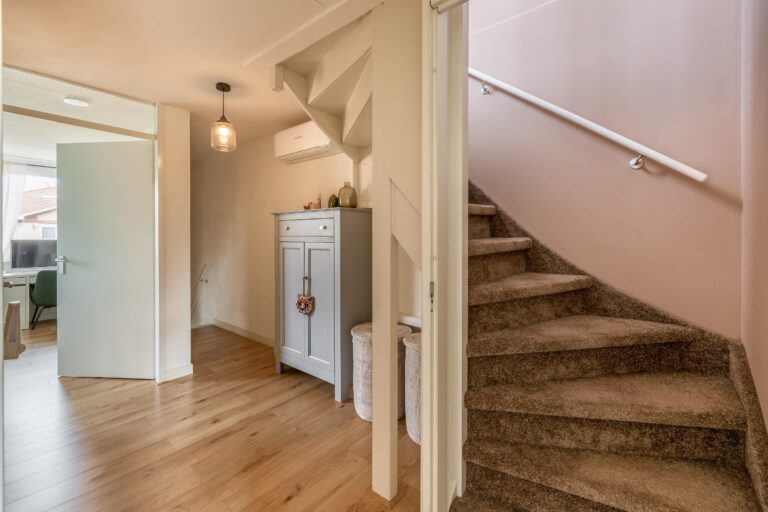 Op de eerste verdieping bevinden zich drie slaapkamers, allemaal afgewerkt met een doorlopende laminaatvloer. Daarnaast vind je hier een luxe, moderne badkamer. Op de overloop is een praktische bergruimte onder de trap aanwezig en ook hier hangt een airco die zowel kan koelen als verwarmen. De badkamer is stijlvol ingericht en beschikt over een ligbad, een ruime inloopdouche, verwarmde en verlichte spiegel, wastafel met meubel, toilet en mechanische ventilatie.