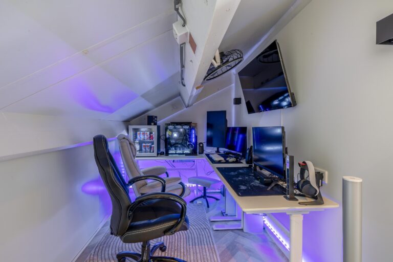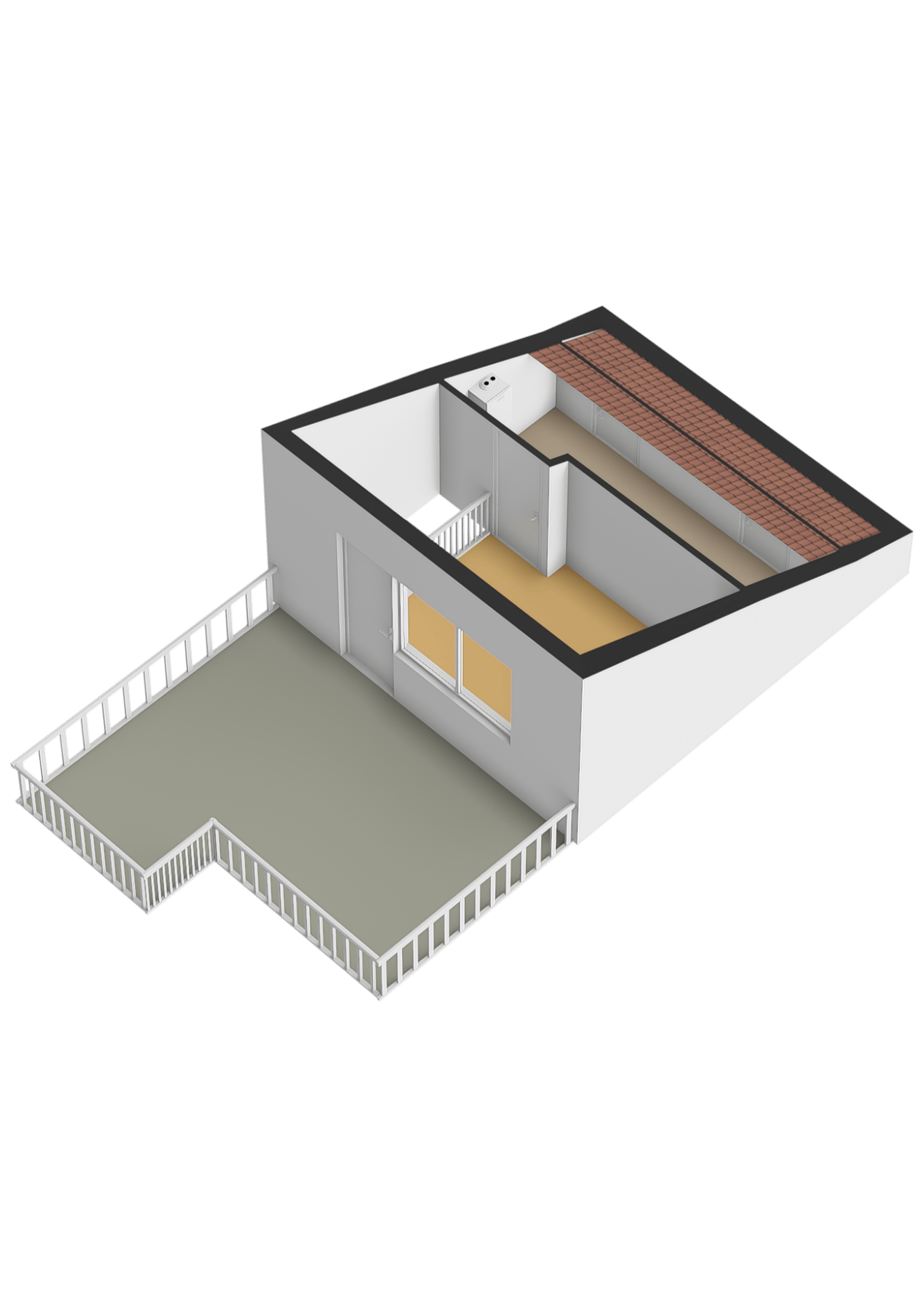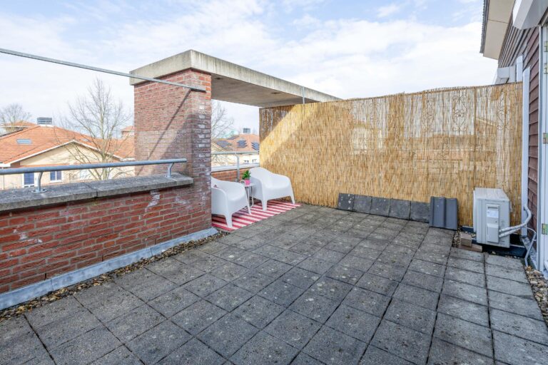 De zolder is via een vaste trap bereikbaar en door de deur op de overloop is hier een heerlijke 4e slaapkamer met ruim dakterras, airco en elektrische rolluiken gecreëerd. Ook is er op deze verdieping een praktische ruimte gecreëerd voor bijvoorbeeld een kantoor of game kamer. In deze ruimte staat ook de Atag Cv ketel uit 2022 (huur).