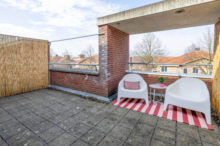 Het ruime dakterras met veel privacy is een fijne plek om de dag te beginnen of om af te ronden.