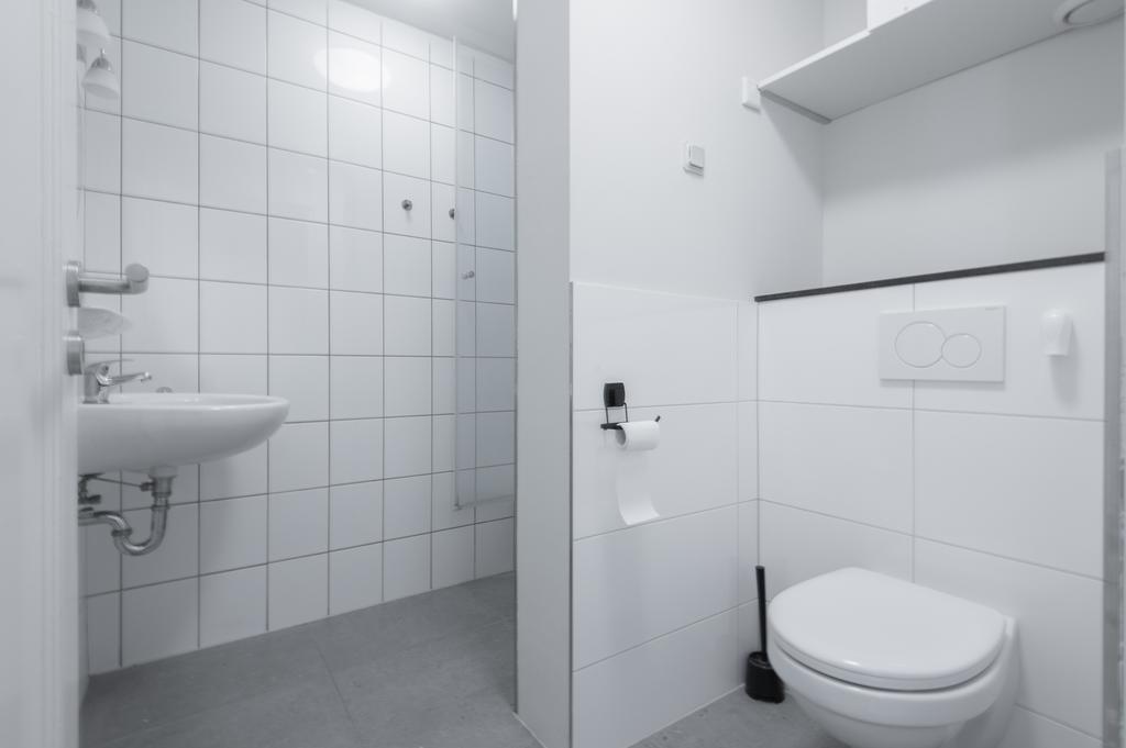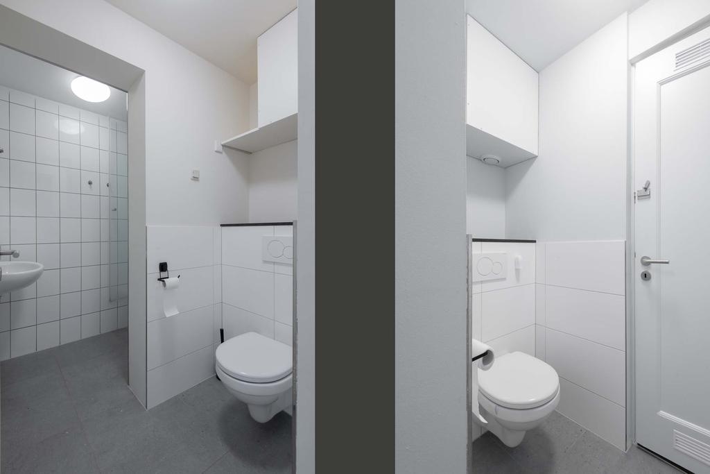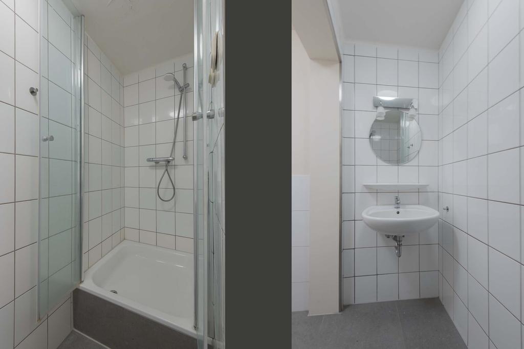 Gemeenschappelijk dakterras. Trap naar eigen entree. Woonkamer met luxe keuken en uitzicht over de Parade. Slaapkamer. Luxe badkamer met toilet.