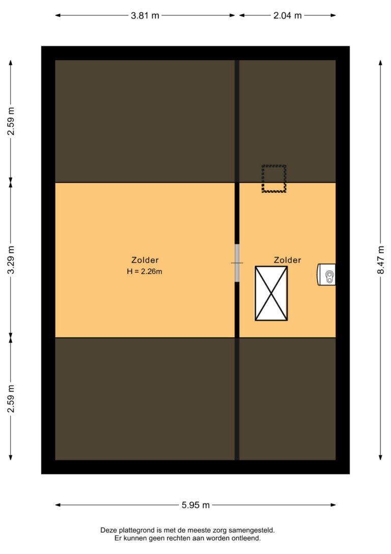 De bergzolder (ca. 12,5m²) is bereikbaar door middel van een vlizotrap. Hier zijn een klein dakraam en de cv-ketel aanwezig. Het is mogelijk om een vaste trap naar deze verdieping te creëren. Wanneer er dan bijvoorbeeld een dakkapel geplaatst wordt kan er een 4de slaapkamer gemaakt worden.