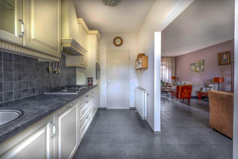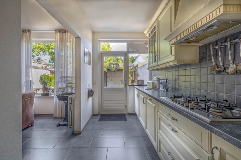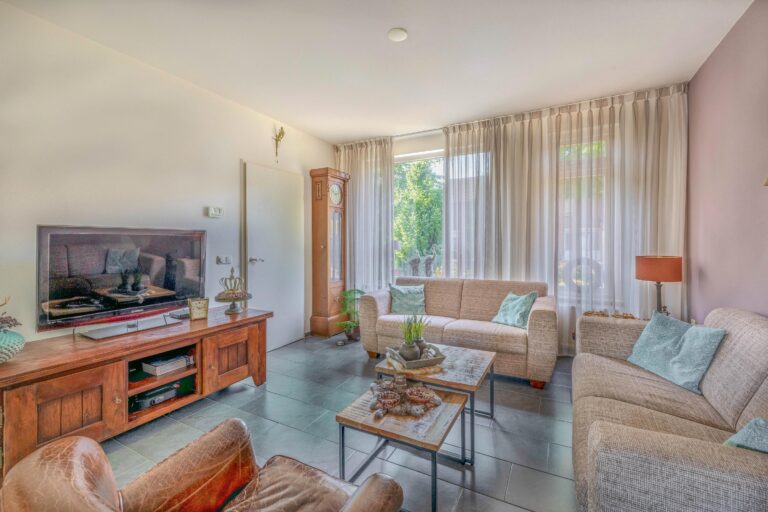 De doorzonwoonkamer (ca. 32m²) is heerlijk licht door de grote ramen aan de voor- en achterzijde. Aan de voorzijde is een markies aanwezig. De open keuken (ca. 7m²) is uitgerust met een 5-pits gasfornuis, afzuigkap, vaatwasser, koelkast en combi oven/magnetron. In de aparte berging is voldoende opbergruimte aanwezig. Vanuit hier is de kruipruimte toegankelijk.