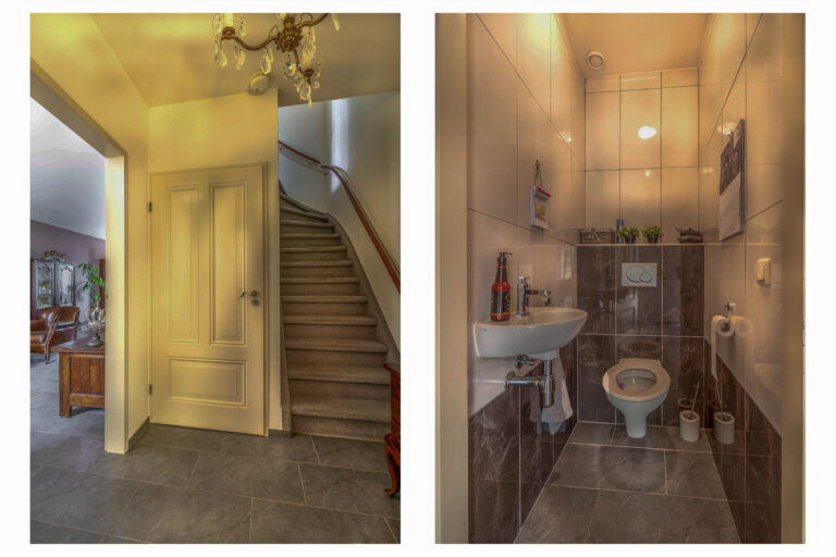 De begane grond is voorzien van een doorlopende tegelvloer. In de hal zijn de meterkast en het toilet met fonteintje aanwezig.