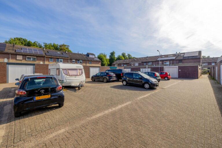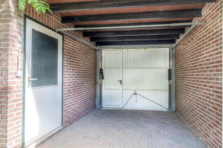 In de volledig omheinde achtertuin geniet je van optimale privacy doordat er geen inkijk is. Achterin staat een stenen berging (ca. 9,5m²) met elektra en een overkapping (ca. 9,5m²) met kantelpoort en loopdeur. Het is mogelijk om de overkapping met berging te vergroten en zo een garage op eigen terrein te creëren. Achter de woning ligt een grote openbare parkeerplaats met voldoende parkeerplekken.