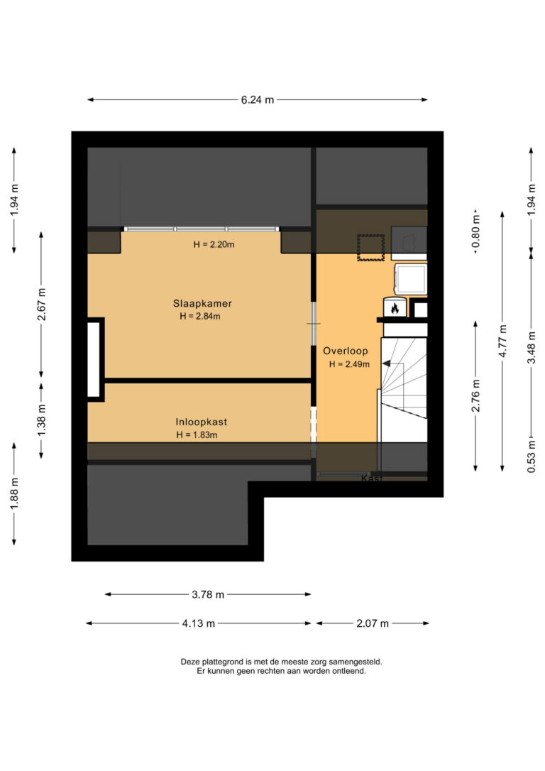 De vierde slaapkamer (ca. 10m²) is voorzien van een laminaatvloer en een dakkapel met elektrisch rolluik. De berging (ca. 4,5m²) wordt momenteel gebruikt als inloopkast.