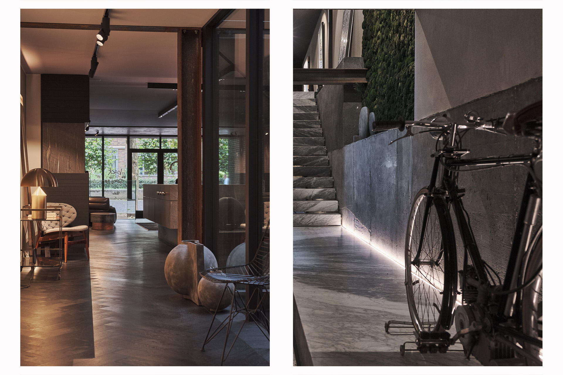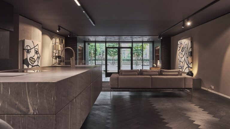 De woning aan de Cedron vormt een serene oase met hoogwaardige materialen en een iconische verticale glazen schacht met een Toscaanse kurkeik als levende sculptuur. De presentatieruimte aan de Nieuwstraat is juist een ingetogen, doordachte werkruimte waarin helderheid, focus en creativiteit centraal staan.