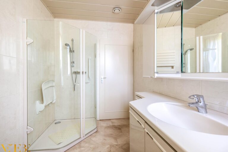 Ten slotte is deze woning uitgerust met 18 zonnepanelen, 2 airco-units én een volledig onderkelderd fundament – duurzaam én praktisch. Buiten geniet je van een groene, volledig omheinde tuin met volop privacy. En parkeren? Geen probleem, de eigen oprit biedt ruimte voor twee auto’s.