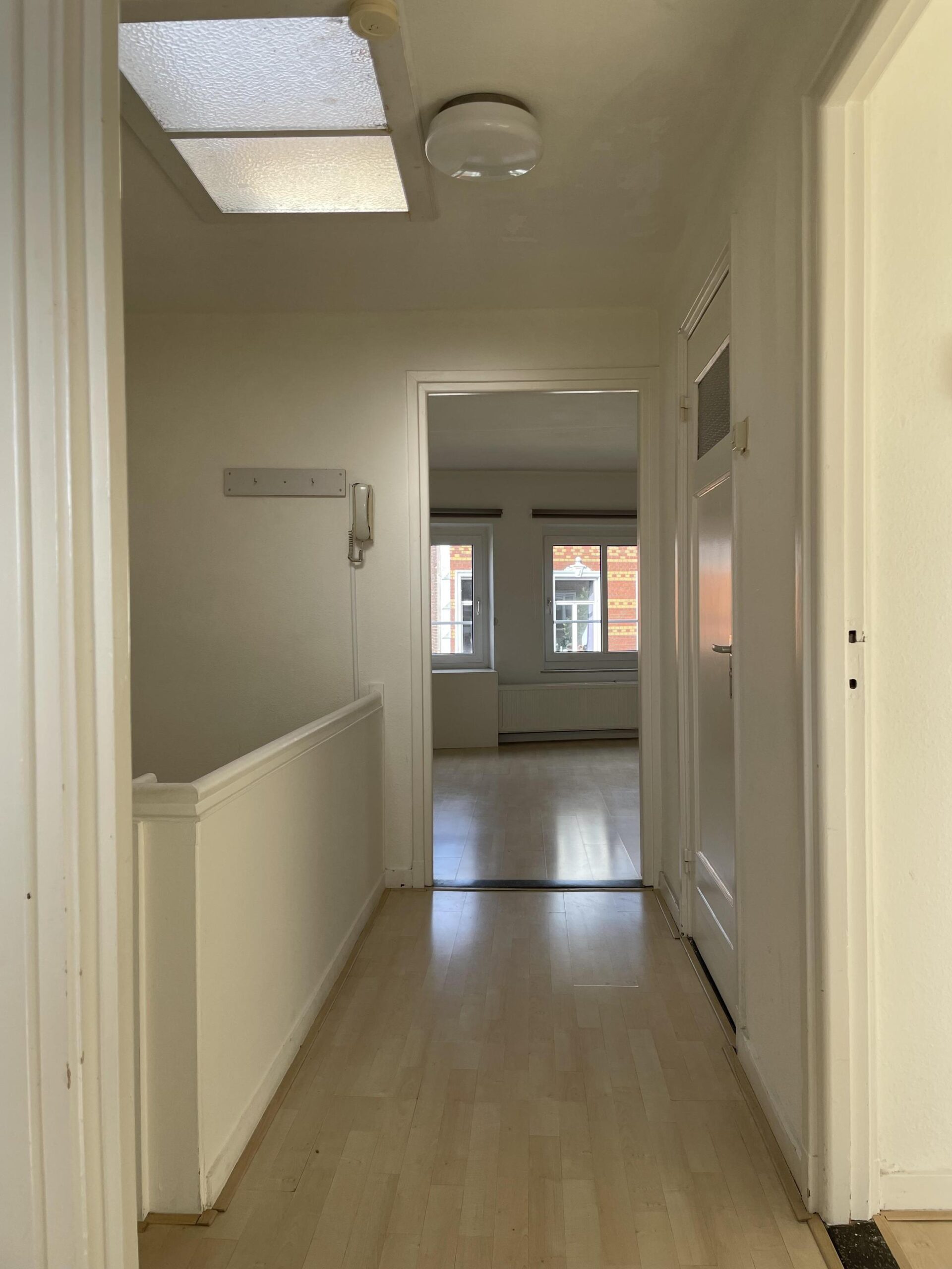 Trapopgang naar de verdiepingen. Achter de voordeur is middels een trap het appartement te bereiken. Overloop met toegang tot de aparte keuken, de slaapkamer met wastafel, de woonkamer en de badkamer. De woonkamer biedt een fraai uitzicht op de levendige Parade. De badkamer is voorzien van een toilet, wastafel met meubel, douchehoek en aansluiting voor het witgoed.