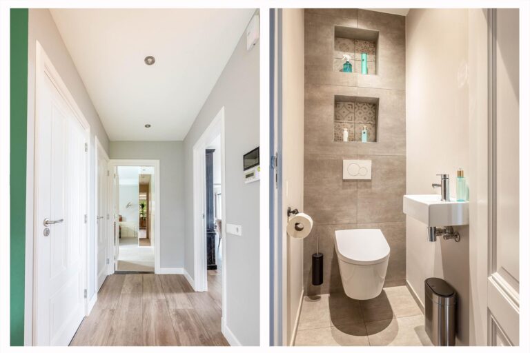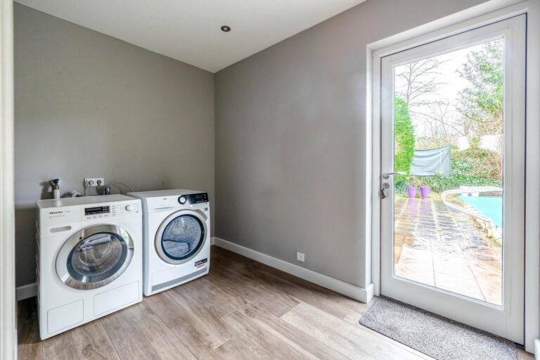 – Vloerverwarming in de woonkamer, keuken, wasruimte, hal en toilet op de begane grond.