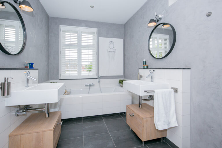 Via een fraaie trap is de ruime overloop bereikbaar en hieraan grenzen de 3 grote slaapkamers, de badkamer en het separate toilet. De badkamer is mooi ingericht en uitgevoerd met een ligbad, een grote inloopdouche, 2 wastafels met verwarmde spiegels en een raam zorgt voor daglicht en natuurlijke ventilatie (naast de gebalanceerde ventilatie). Een praktische berging die ook via de overloop bereikbaar is, is voorzien van de witgoedaansluitingen. De hoofdslaapkamer (ca. 19 m²) heeft een fraaie inloopkast van ca. 8,5 m². De overige 2 slaapkamers zijn resp. ca. 18 m² en 15 m² groot.