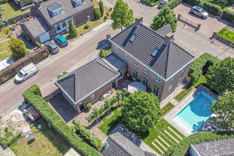 Een zeer mooie met hoogwaardige materialen uitgevoerde villa met prachtig aangelegde tuin met mooi zwembad, vlonders, buitendouche, tuinhuis met wastafel en toilet. De kaveloppervlakte bedraagt 865 m². De woning heeft naast de speelkamer op de begane grond, 3 grote slaapkamers op de 1e verdieping en een 5e hobbyruimte op de 2e verdieping. Een inpandige grote garage completeert het geheel.