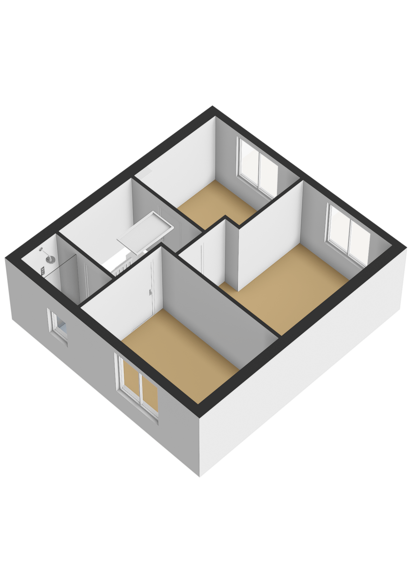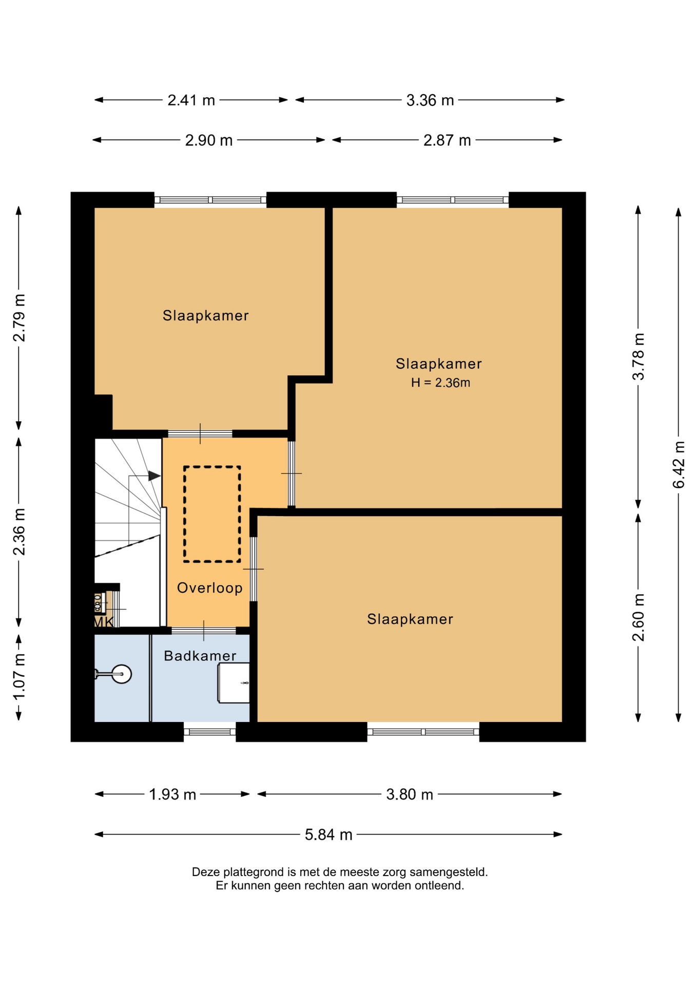 De overloop biedt toegang tot drie slaapkamers (ca. 7,5m², 10m² en 11,5m²), allemaal voorzien van laminaatvloeren. De badkamer is compact maar praktisch en uitgerust met een douche en wastafelmeubel.