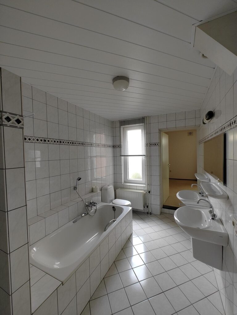 Op de eerste verdieping bevindt zich tevens 1 slaapkamer (ca. 25 m²) en de betegelde badkamer voorzien van een dubbele wastafel, ligbad, aparte douche, wasmachineaansluiting en toilet.