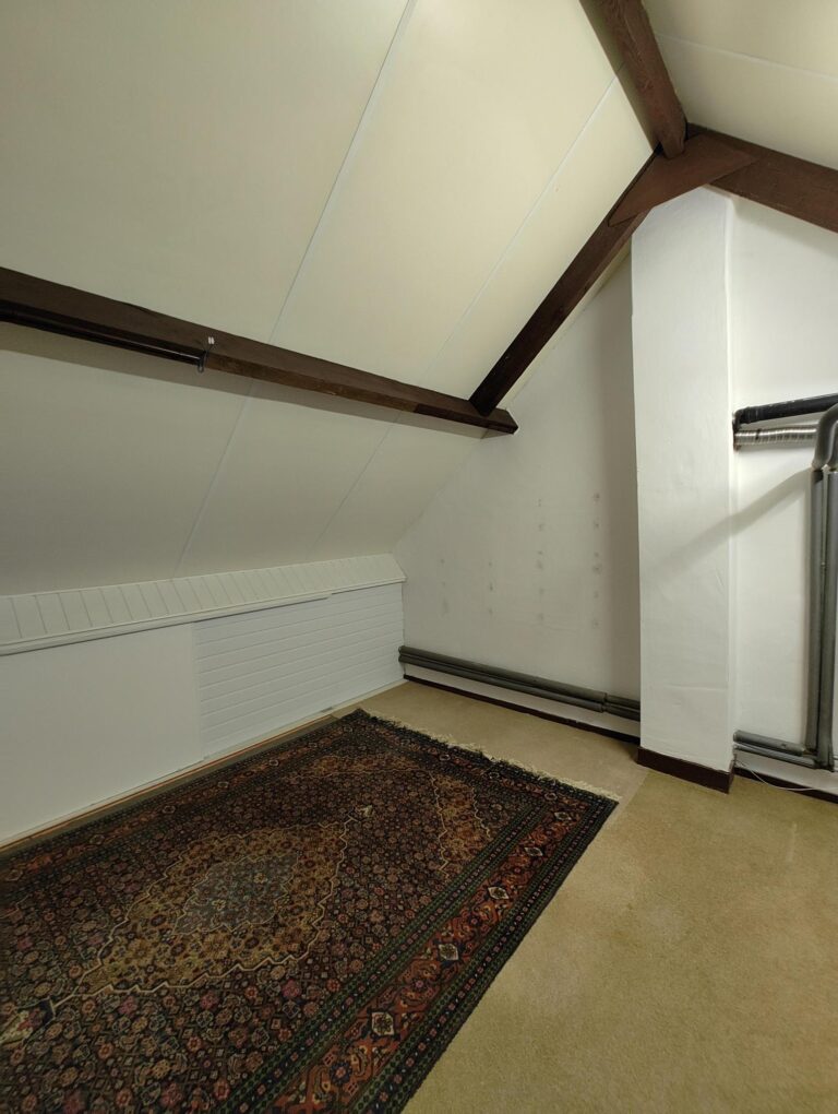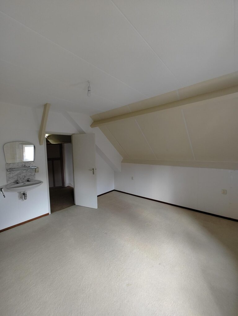 Portaal met kastenwand, apart betegeld toilet en trapopgang naar de verdieping. Bergzolder met CV installatie (vrij nieuwe installatie). 2e Slaapkamer (ca. 22 m²).