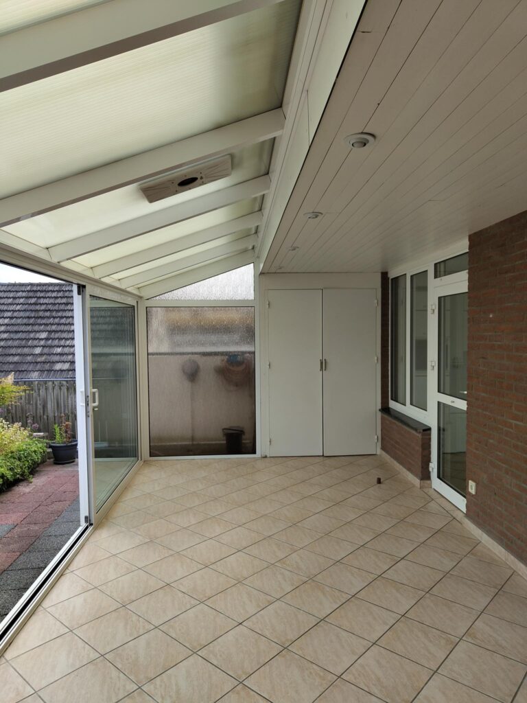 Portaal. Vanuit het portaal bereikt u de royale L-vormige woonkamer (ca. 38 m²) met een leuk uitzicht over de winkelstraat. De woonkamer is voorzien van een mooie vloerbedekking. Aansluitend bereikt u de aparte leefkeuken (ca. 12 m²) voorzien van diverse apparatuur zoals onder andere een magnetron, vaatwasser, koelkast en kookplaat. De keuken is voorzien van een zeilvloer. Vanuit de keuken is de ruime serre te bereiken. Hier is het heerlijk vertoeven. De serre is doormiddel van schuifdeuren geheel te openen waardoor deze ruimte een fijn contact biedt met het dakterras (ca. 30 m²). Netjes aangelegd dakterras met betegeling, beplantingen en kleine vijver.