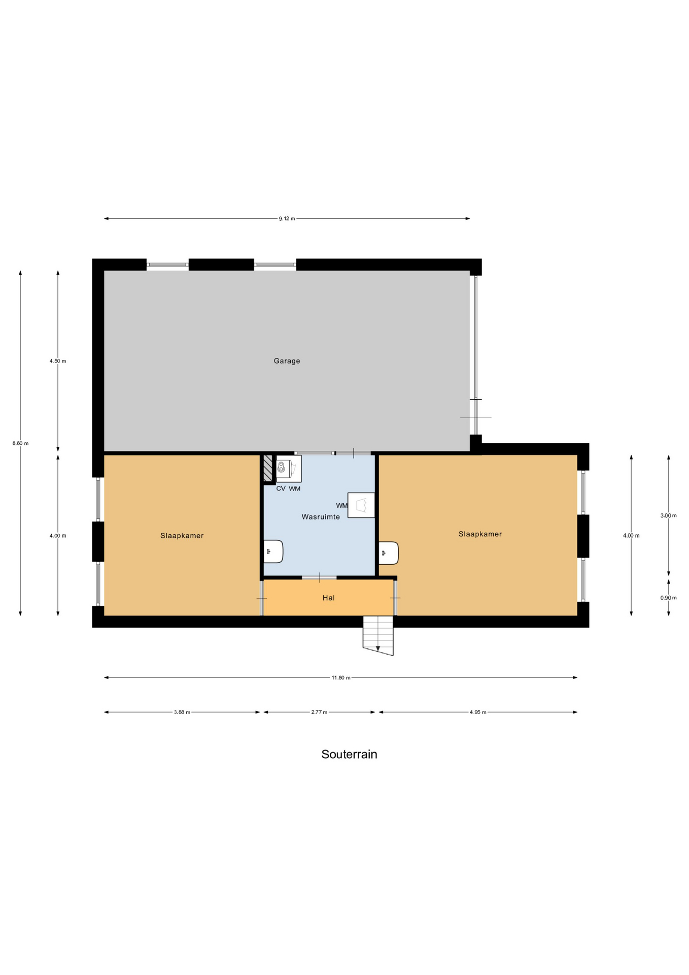 Via de hal bereik je twee ruime slaapkamers (ca. 15 m² en 19 m²), waarvan beiden voorzien van eigen wastafel. Daarnaast bevindt zich hier de wasruimte met witgoedaansluitingen, cv-ketel en extra wastafel. Vanuit deze ruimte is de royale inpandige garage (ca. 41 m²) toegankelijk, voorzien van een nette tegelvloer en een brede, elektrisch bedienbare kanteldeur met loopdeur naar de oprit en tuin.