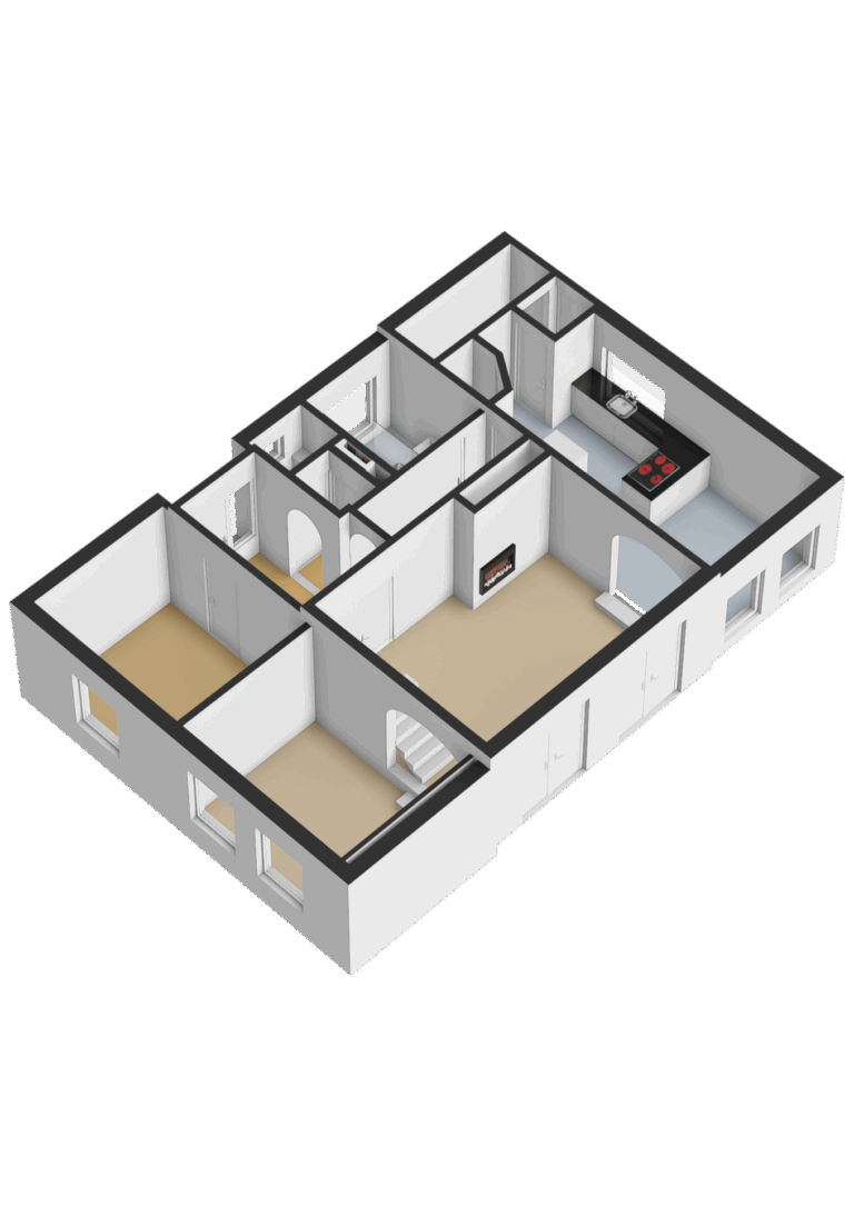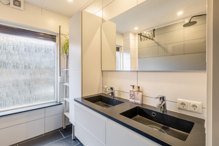 Dankzij de slaapkamer en badkamer op de begane grond is de woning levensloopbestendig, terwijl er op de eerste verdieping nog eens twee ruime slaapkamers en twee badkamers te vinden zijn – ideaal voor gezinnen, gasten of een combinatie van wonen en werken.