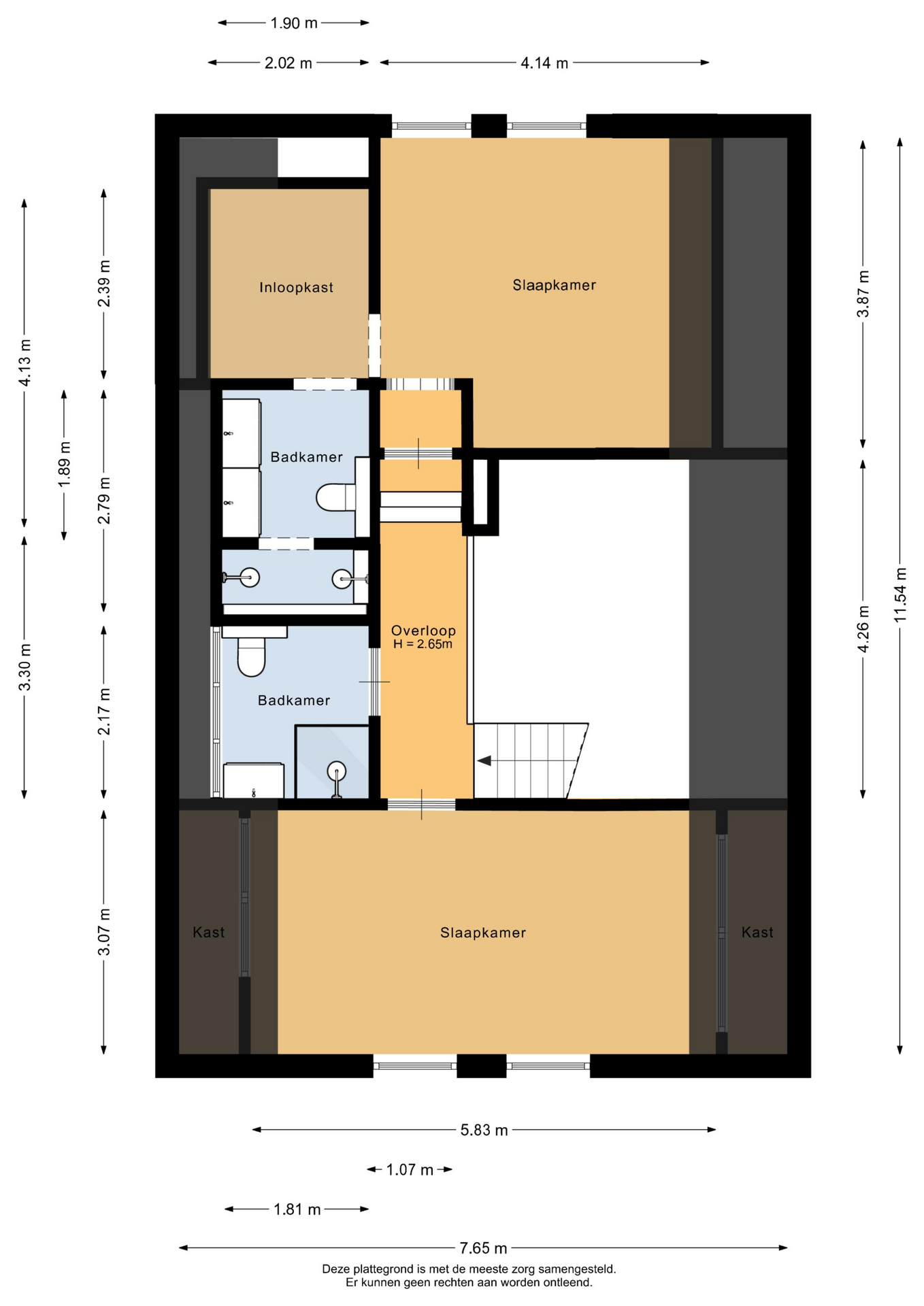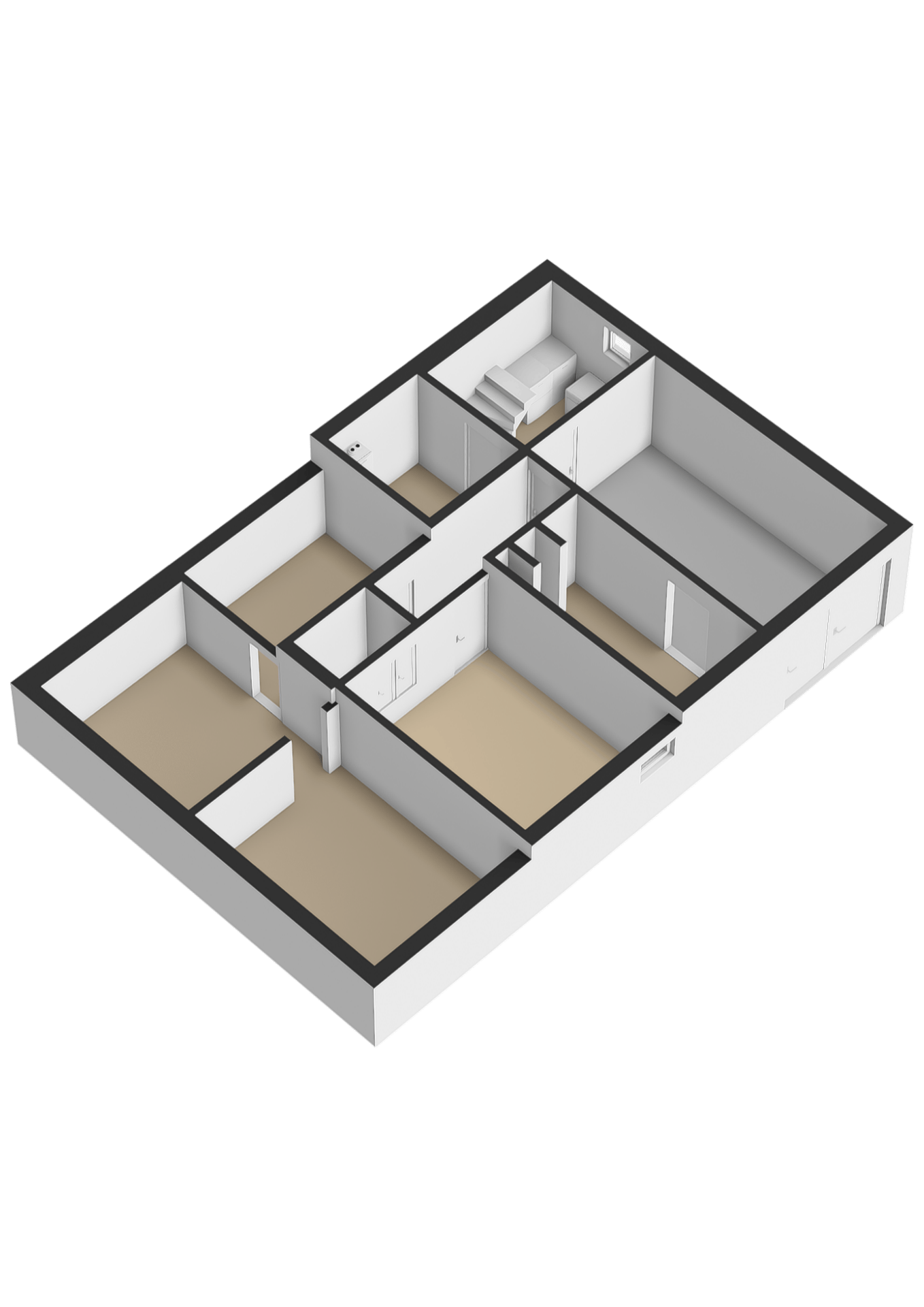 De twee slaapkamers zijn beiden ruim en voorzien van een pvc-vloer. Eén slaapkamer heeft aan beide zijdes bergruimte door middel van schuifdeuren. De hoofdslaapkamer biedt toegang tot de inloopkast en de derde badkamer.